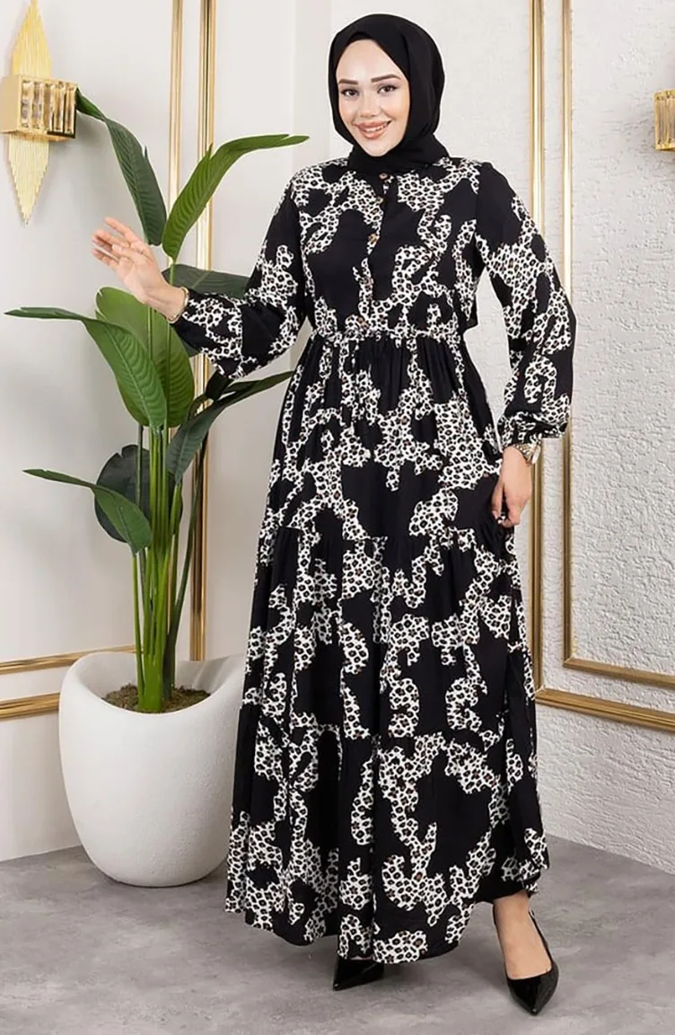 Robe En Viscose à Motif Léopard 7135-04 Noir 7135-04