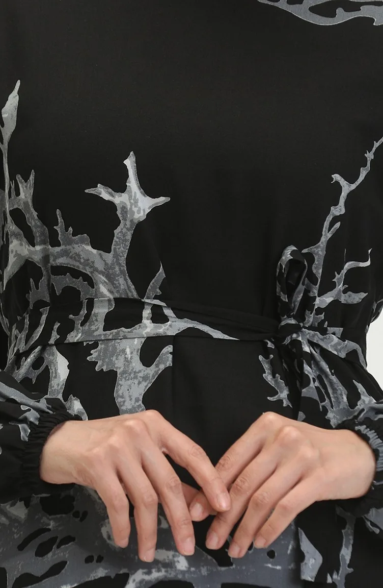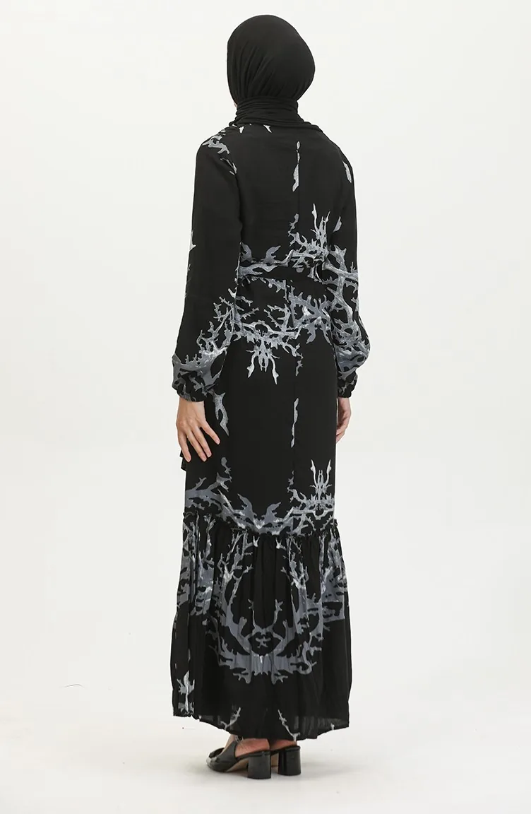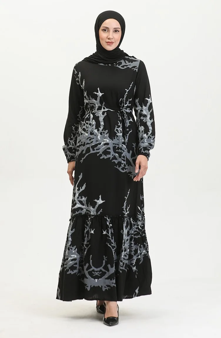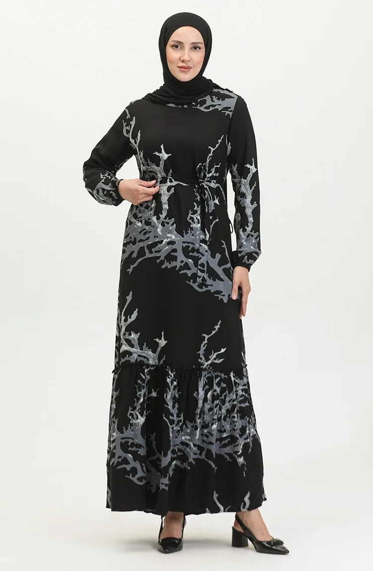 Robe En Viscose à Volants Et Ceinture Alisa 4599B-01 Noir Gris 4599B-01