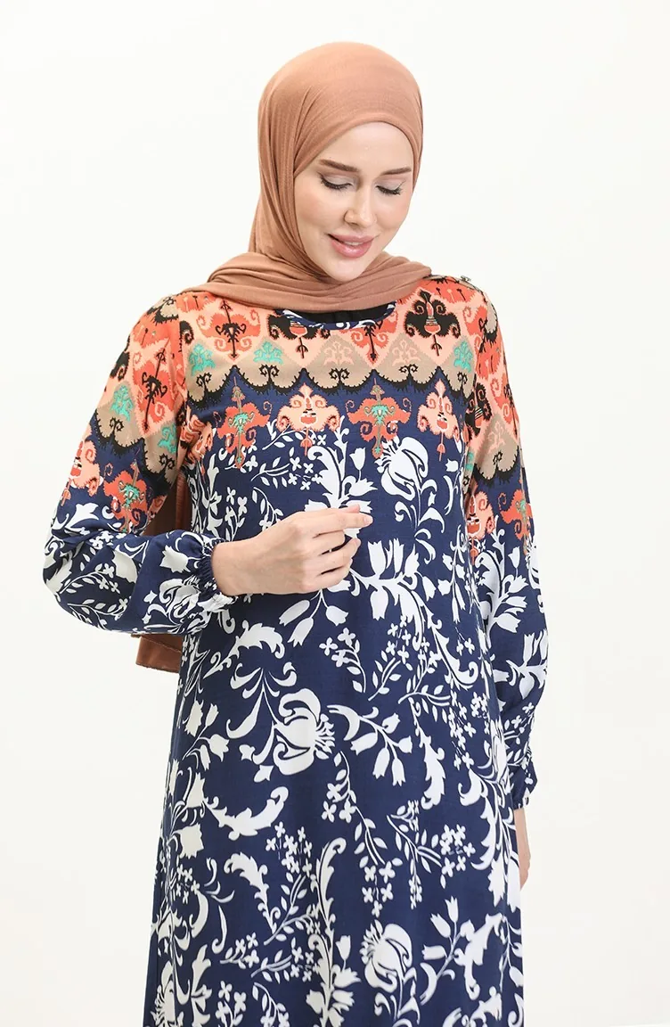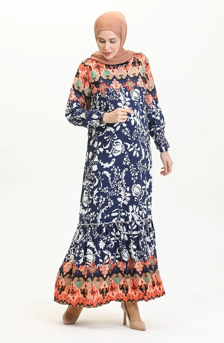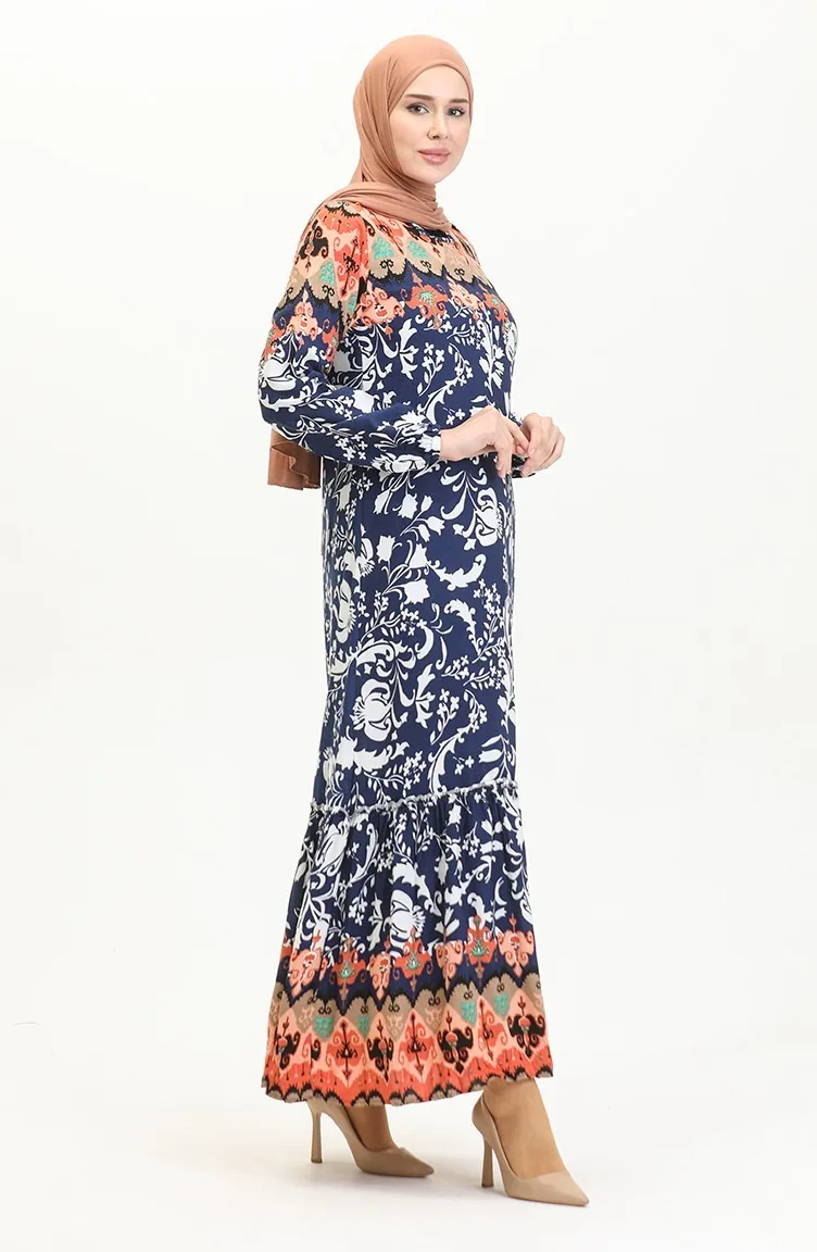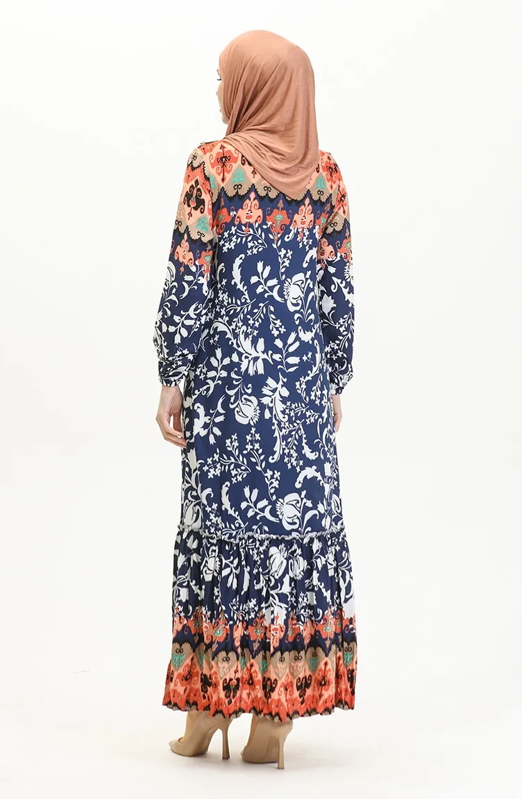 Robe En Viscose à Volants Et Ceinture Alisa 4599E-02 Indigo 4599E-02