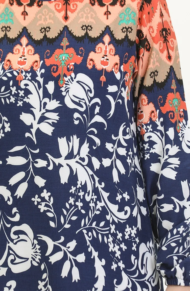 Couleur indigo. Viscose est un type de tissu synthétique et est pratique à utiliser. Tissu à motifs. Détail Boutons. Col Zéro. d'été. Produit porté par le mannequin est sa propre taille.