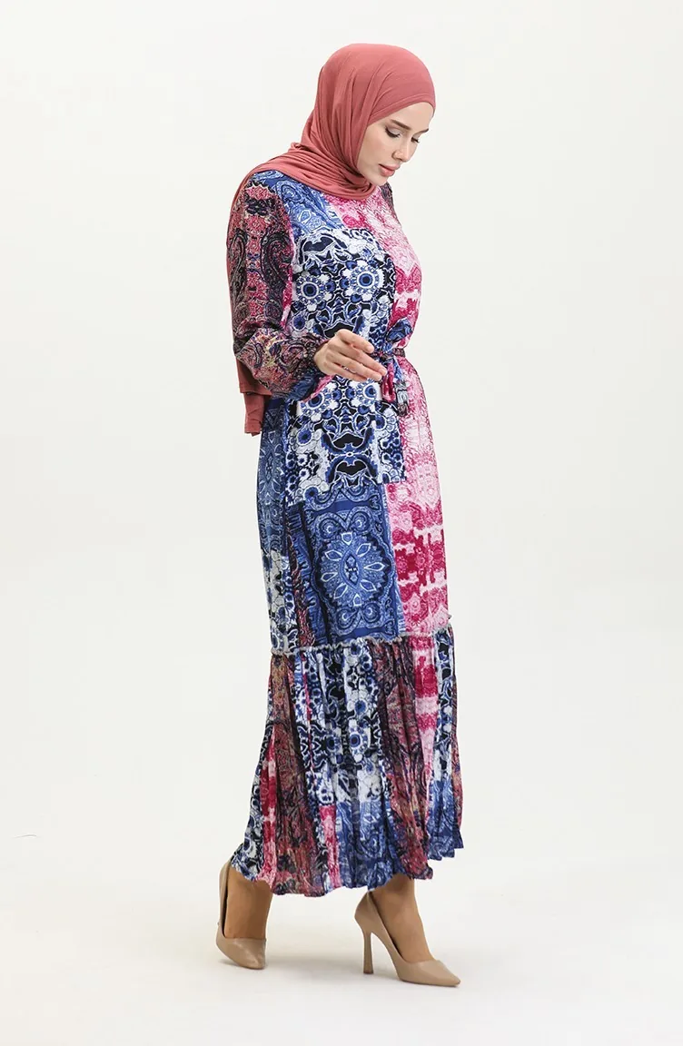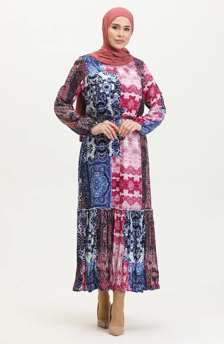 Robe En Viscose à Volants Et Ceinture Alisa 4599G-01 Prune Sax 4599G-01