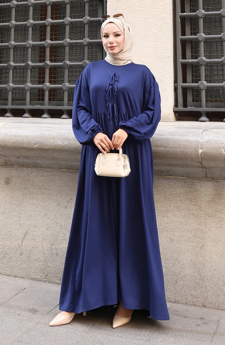 Robe Hijab Confortable à La Coupe Ornée De Dentelle 2171-05 Bleu Marine 2171-05