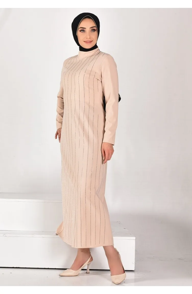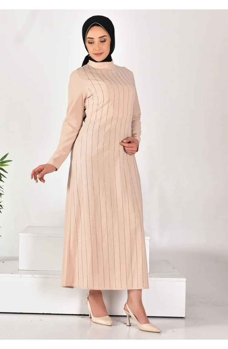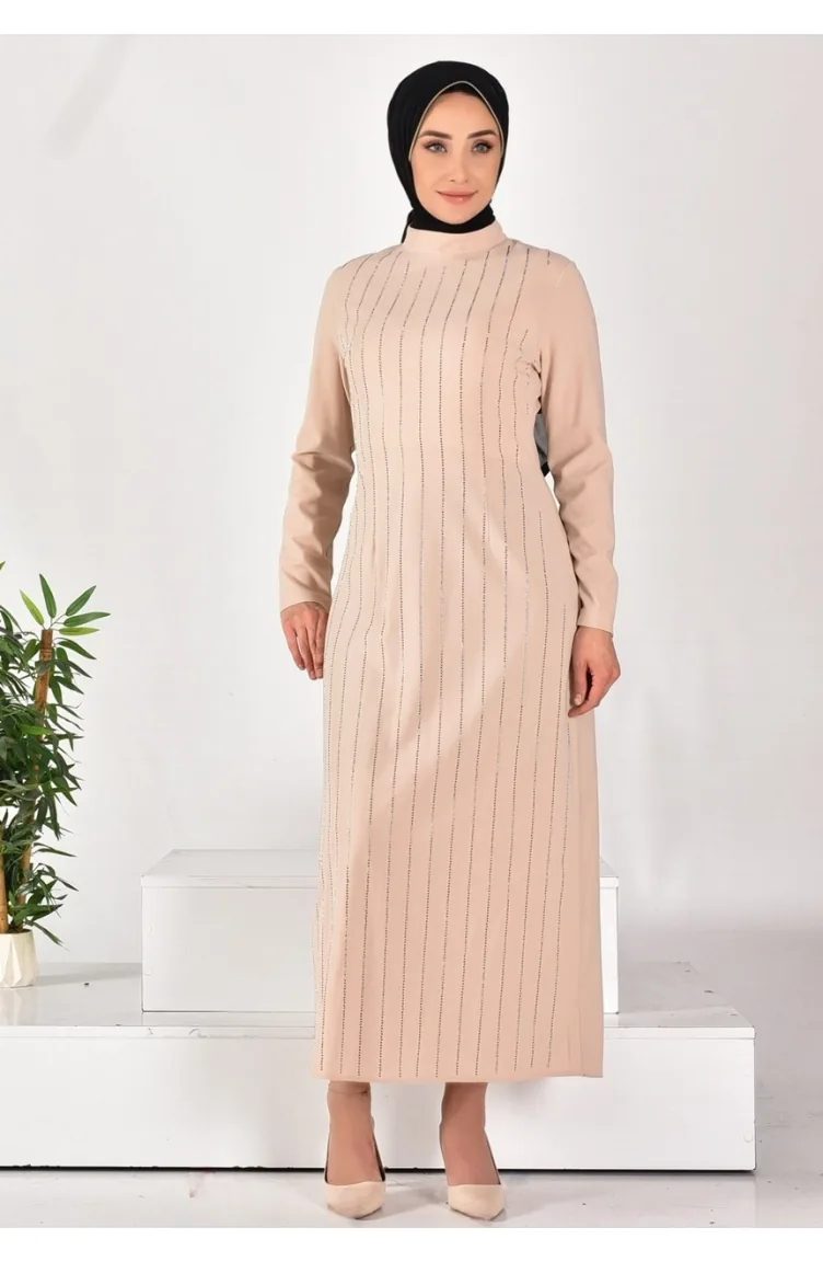 Robe Hijab Rayée Pierre En Tissu Pointe Crêpe 12518-01 Pierre 12518-01