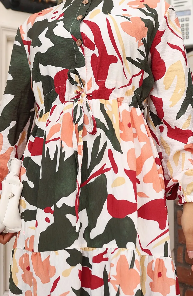Robe Nouée à La Taille En Tissu Modal 0165-01 Kaki Bordeaux 0165-01