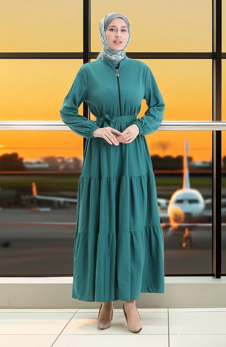 Robe Plissée à Demi-fermeture éclair 1202-04 Vert émeraude 1202-04