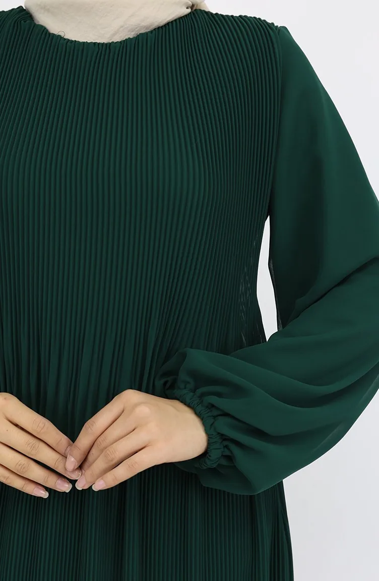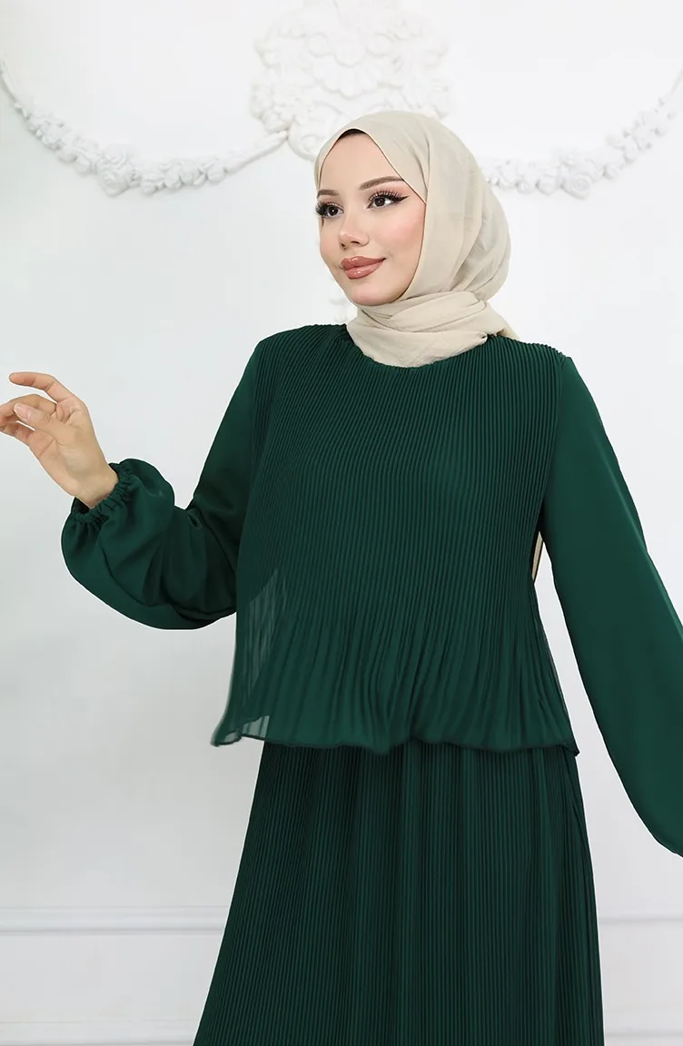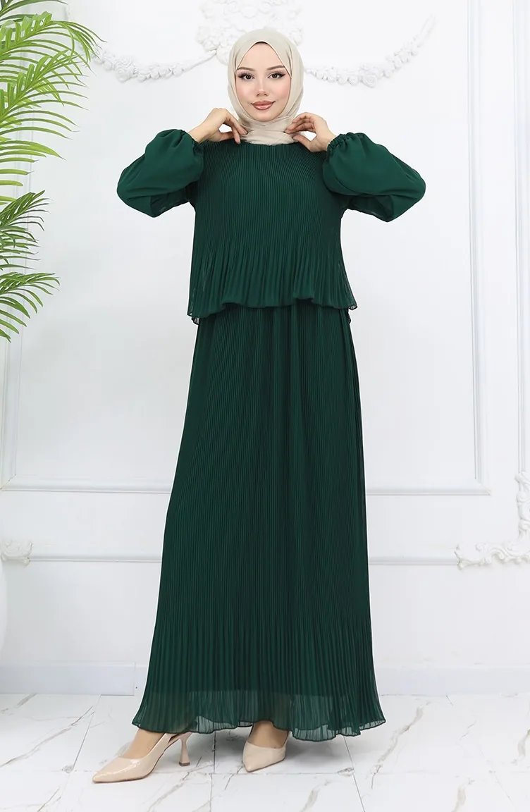 Robe Plissée En Mousseline De Soie Multicolore 2044-05 Vert émeraude 2044-05
