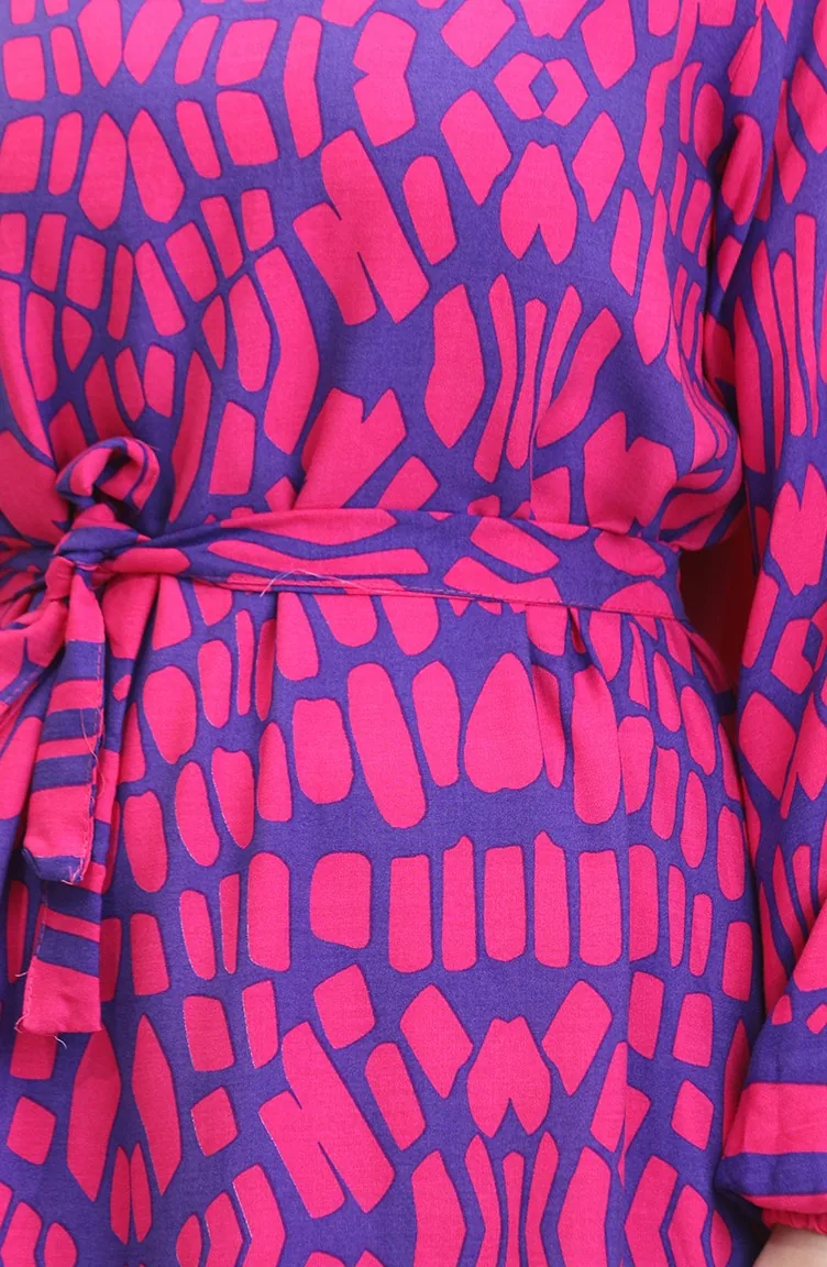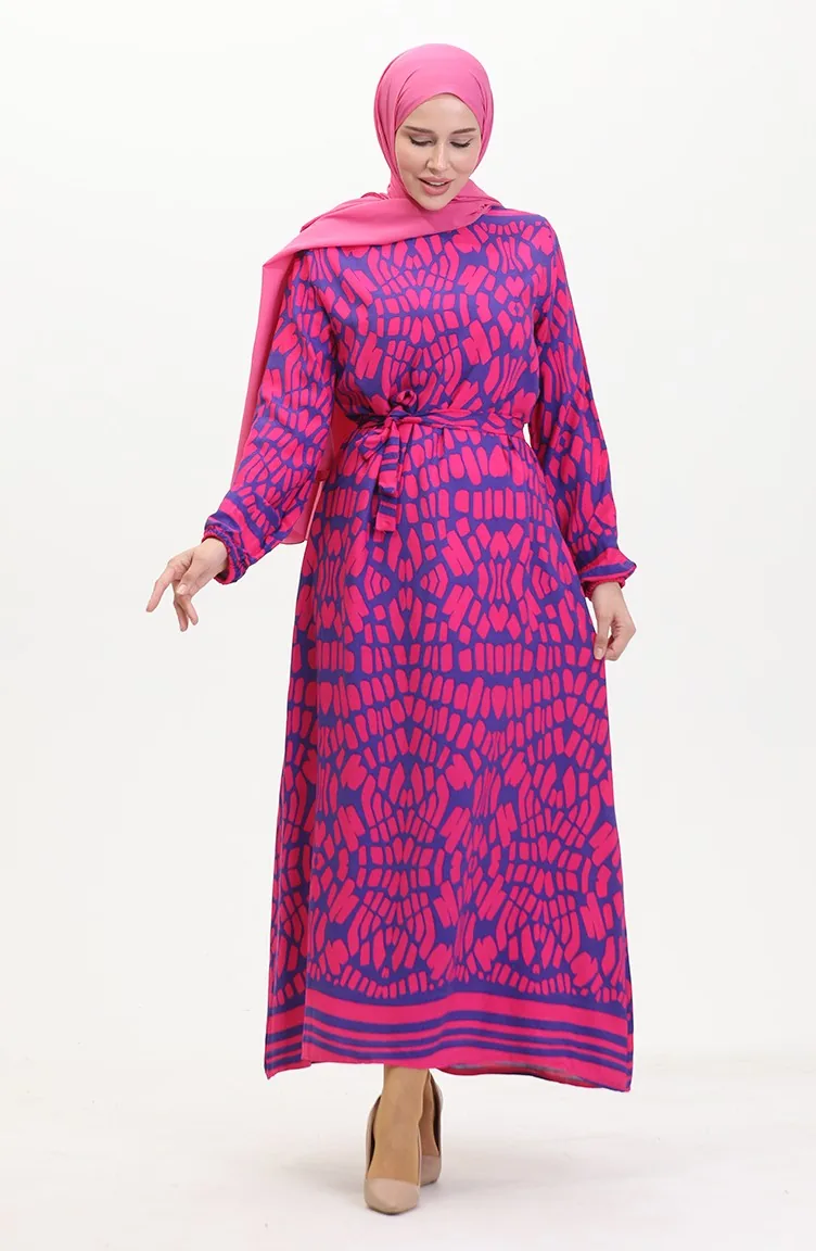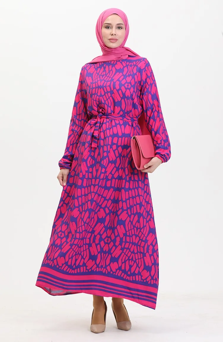Robe Viscose A Motifs Et Ceinturée 0473-02 Fuchsia 0473-02