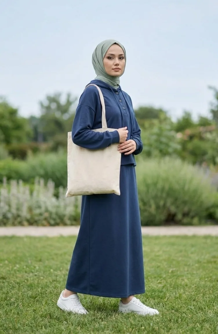 Couleur Bleu Marine. crêpe scuba crêpe scuba. Simple. Avec boutons. Manches longues. Adapté pour les 4 saisons. Produit porté par le mannequin est sa propre taille.