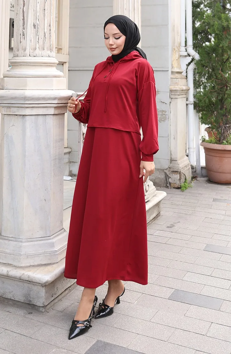 Couleur bordeaux. crêpe scuba crêpe scuba. Simple. Avec boutons. Adapté pour les 4 saisons. Produit porté par le mannequin est sa propre taille.