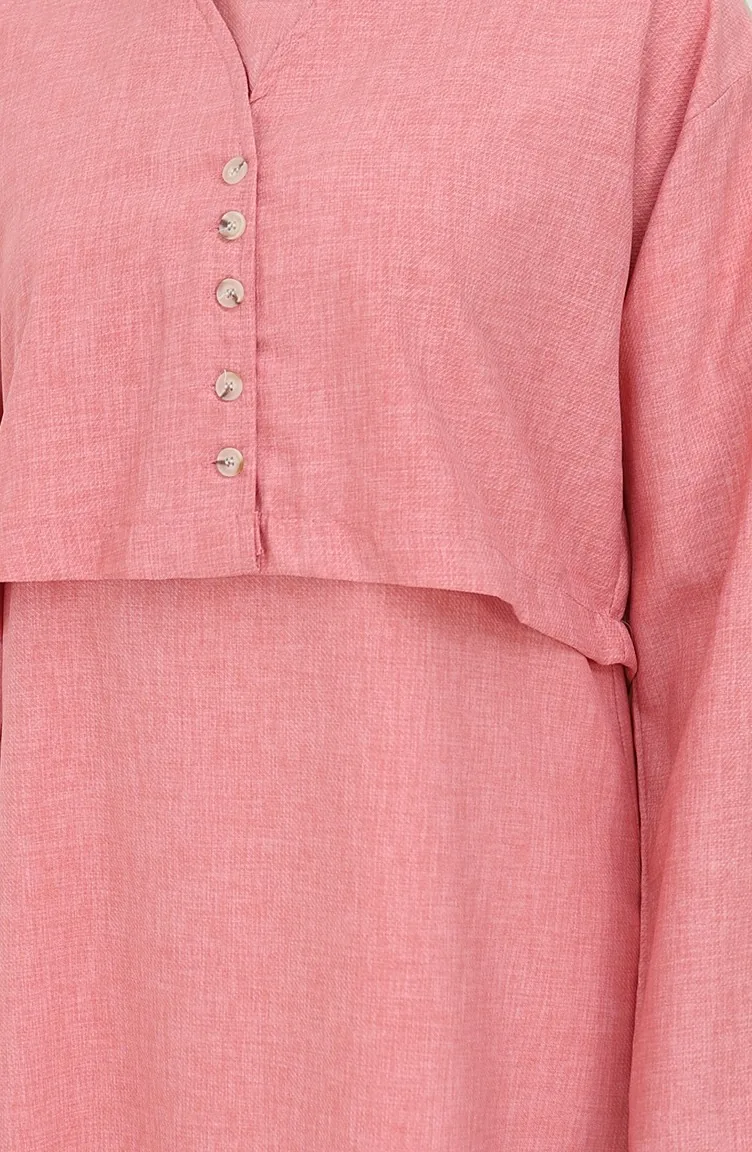 Couleur Rose. Tissu de coton. Simple. Avec boutons. Col Zéro. Adapté pour les 4 saisons. Option de grande taille disponible.
