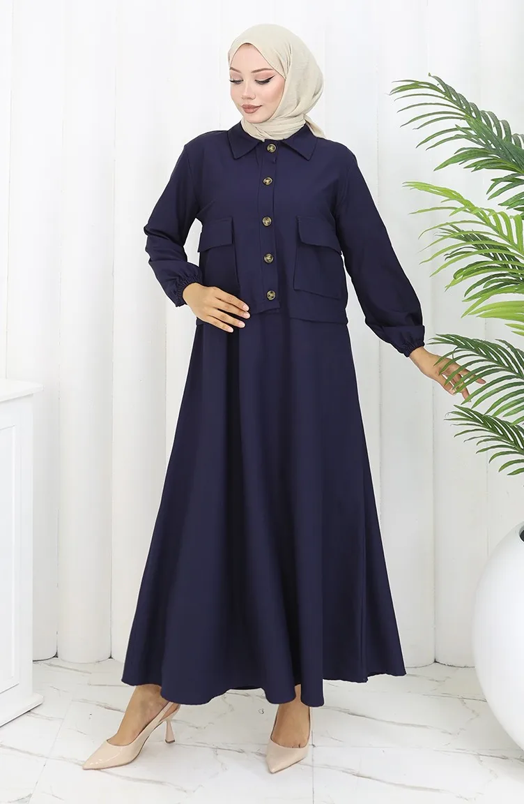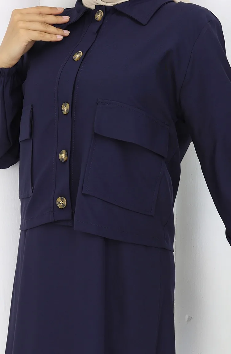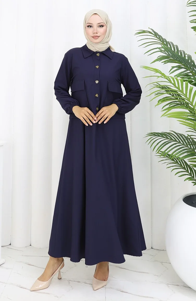 Couleur Bleu Marine. Tissu de coton. Simple. Avec boutons. Manches élastiques. Col Chemise. Adapté pour les 4 saisons. Option de grande taille disponible.