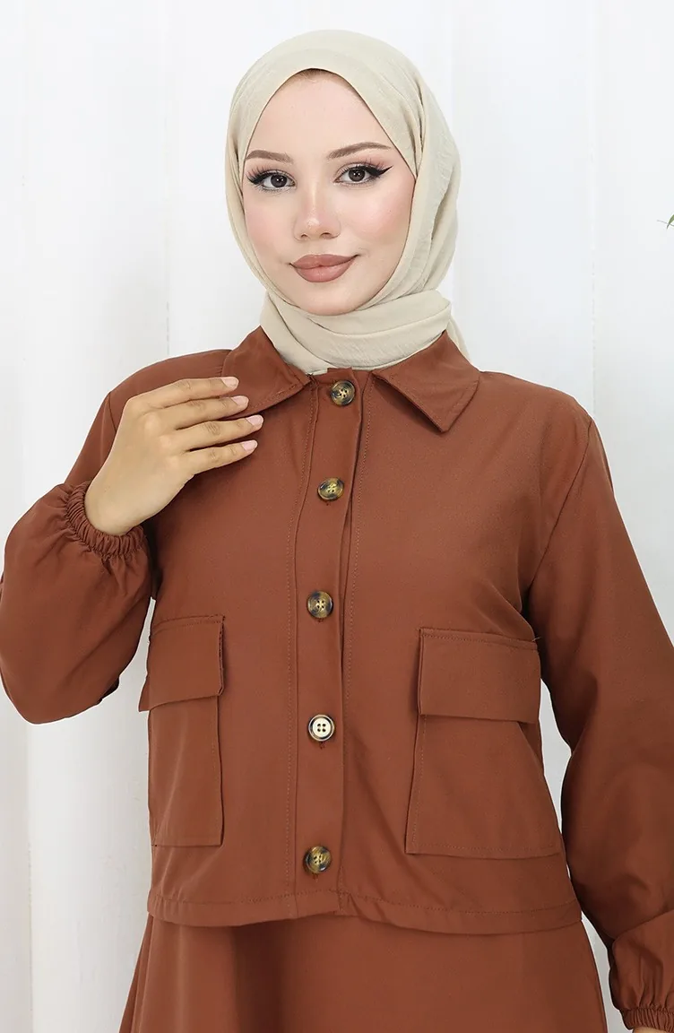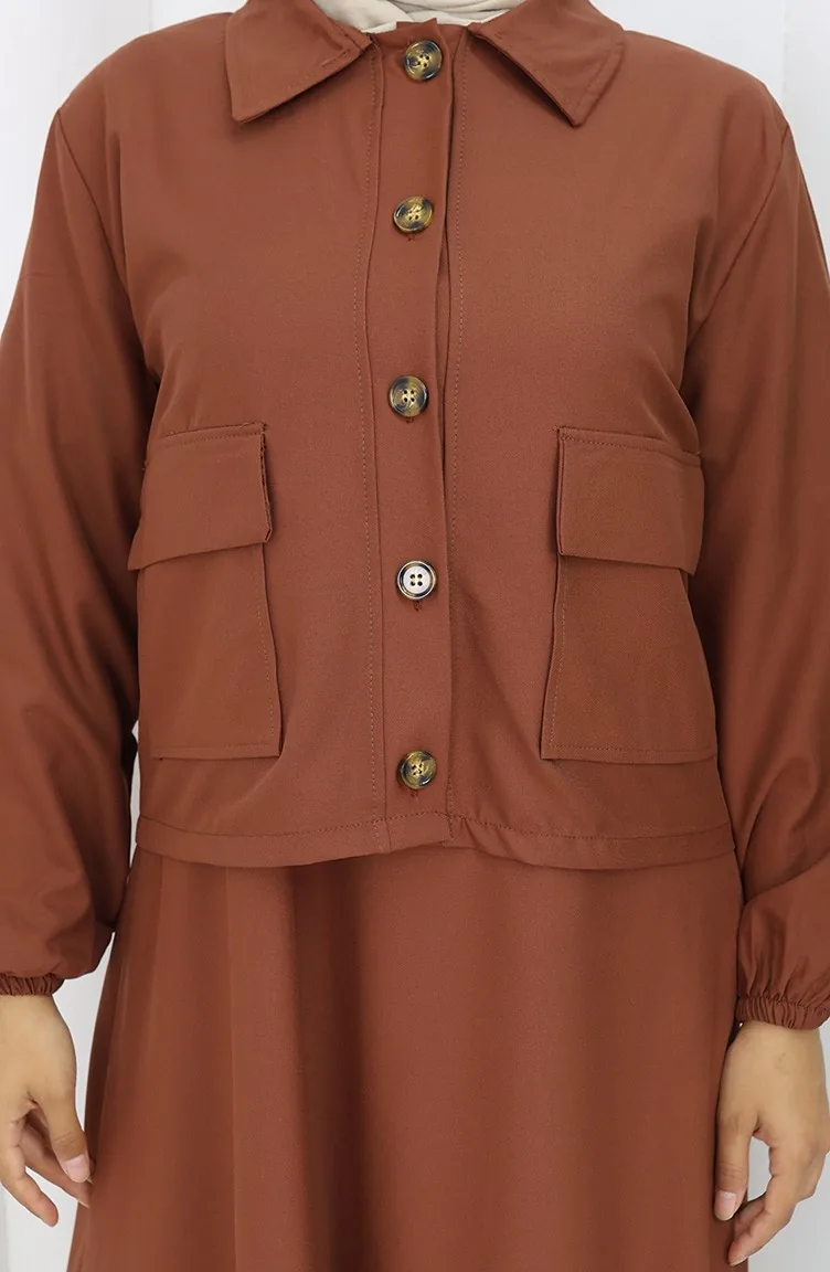 Couleur Brique. Tissu de coton. Simple. Avec boutons. Manches élastiques. Col Chemise. Adapté pour les 4 saisons. Option de grande taille disponible.
