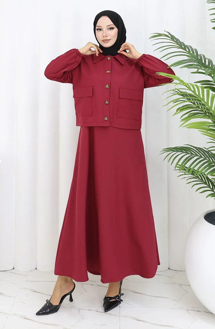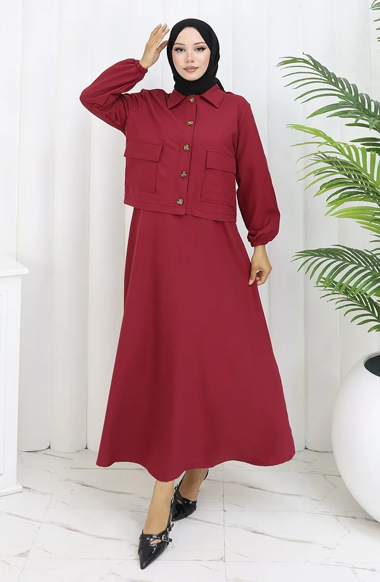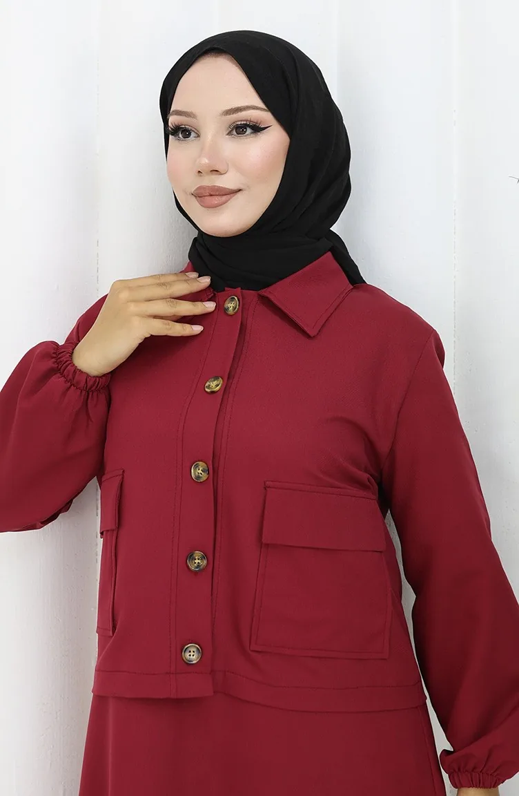 Couleur bordeaux. Tissu de coton. Simple. Avec boutons. Manches élastiques. Col Chemise. Adapté pour les 4 saisons. Option de grande taille disponible.