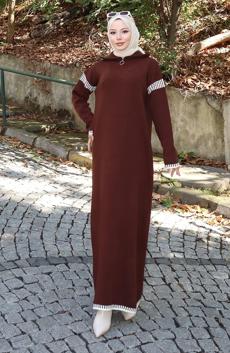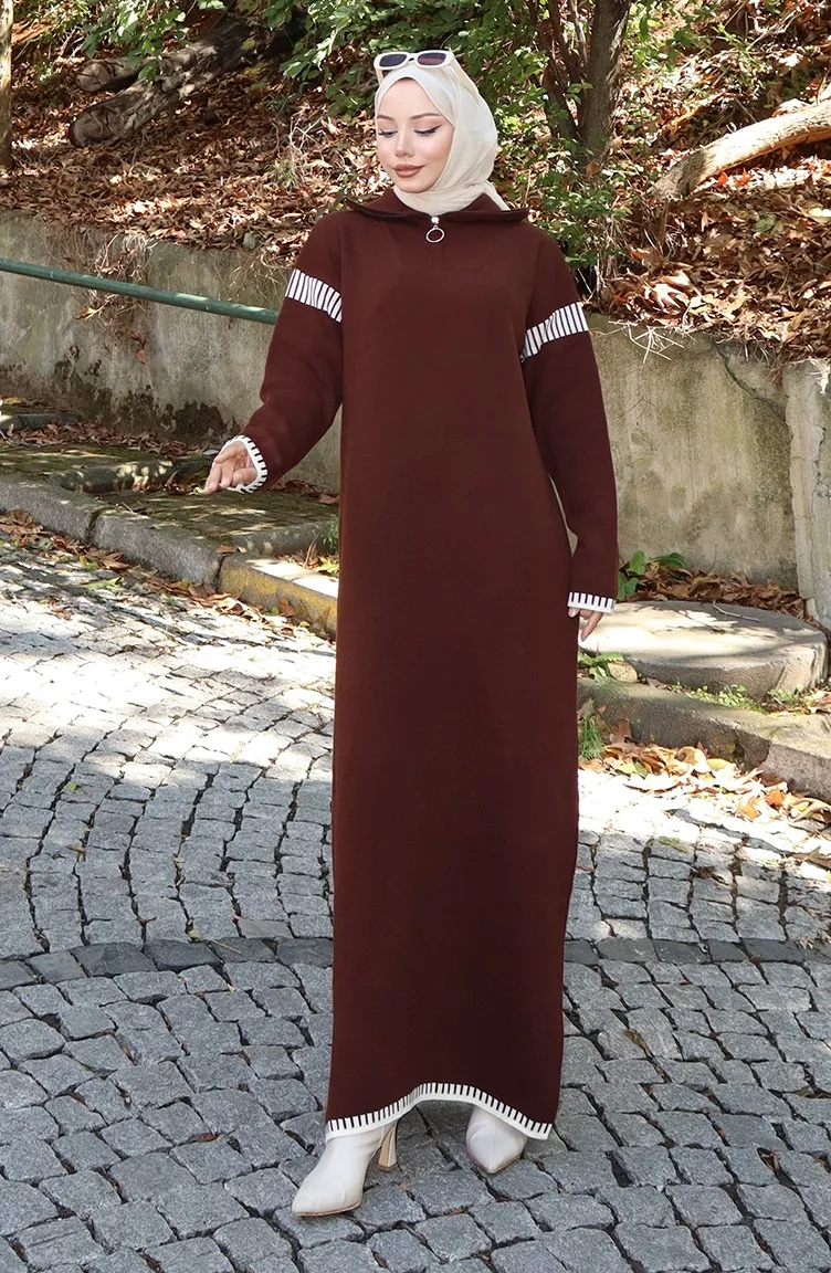 Robe En Tricot à Col Roulé Garnie 0508-04 Marron 0508-04