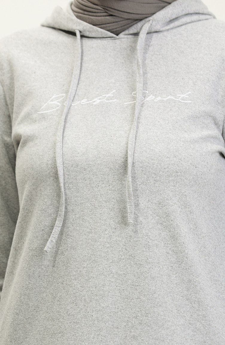 La couleur Gris. Tissus a deux fils est utilisé. Motifs d'écriture. Sans doublure. Manches longues. Saisonnier. Option de grande taille disponible.