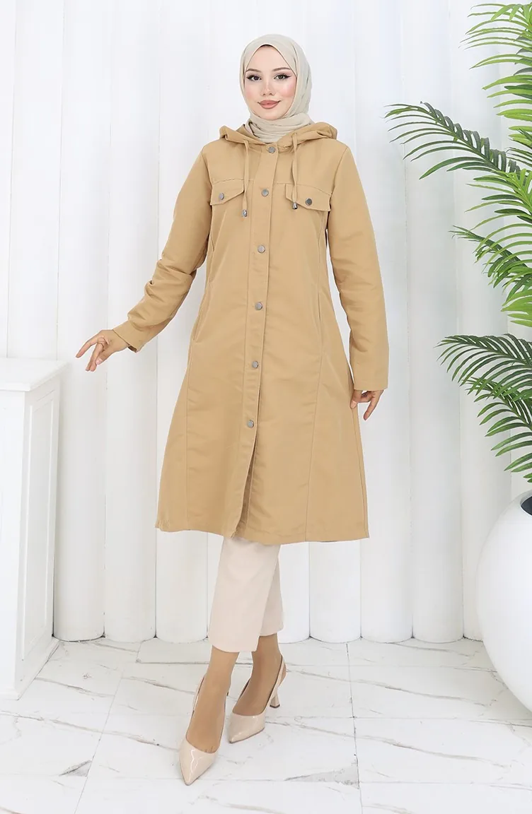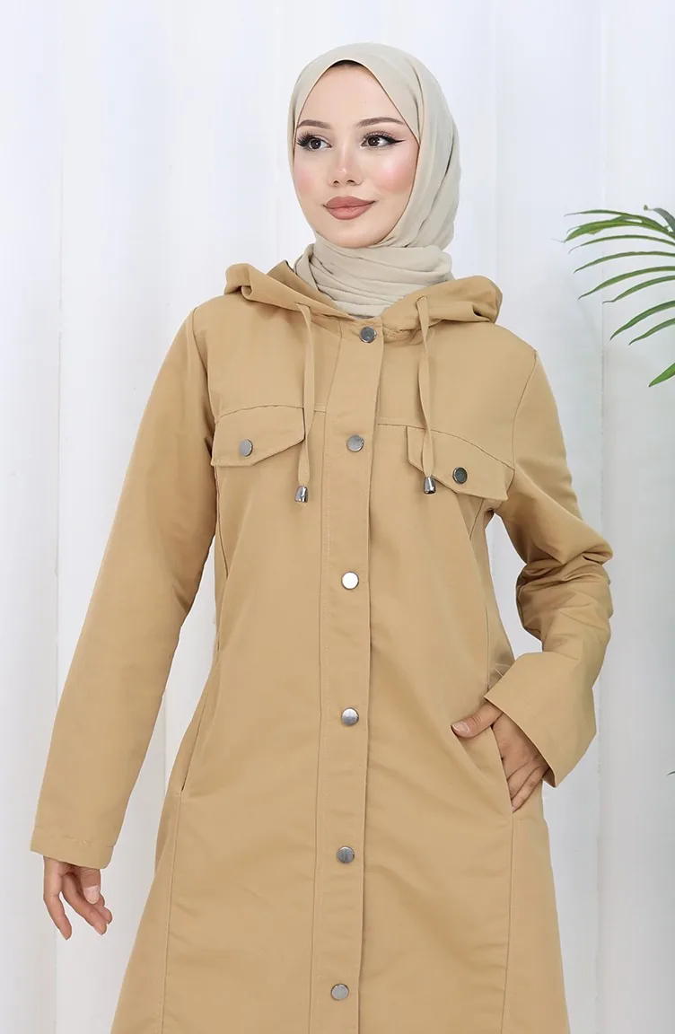Trench-coat à Capuche En Tissu Bondit 0185-03 Café Au Lait 0185-03
