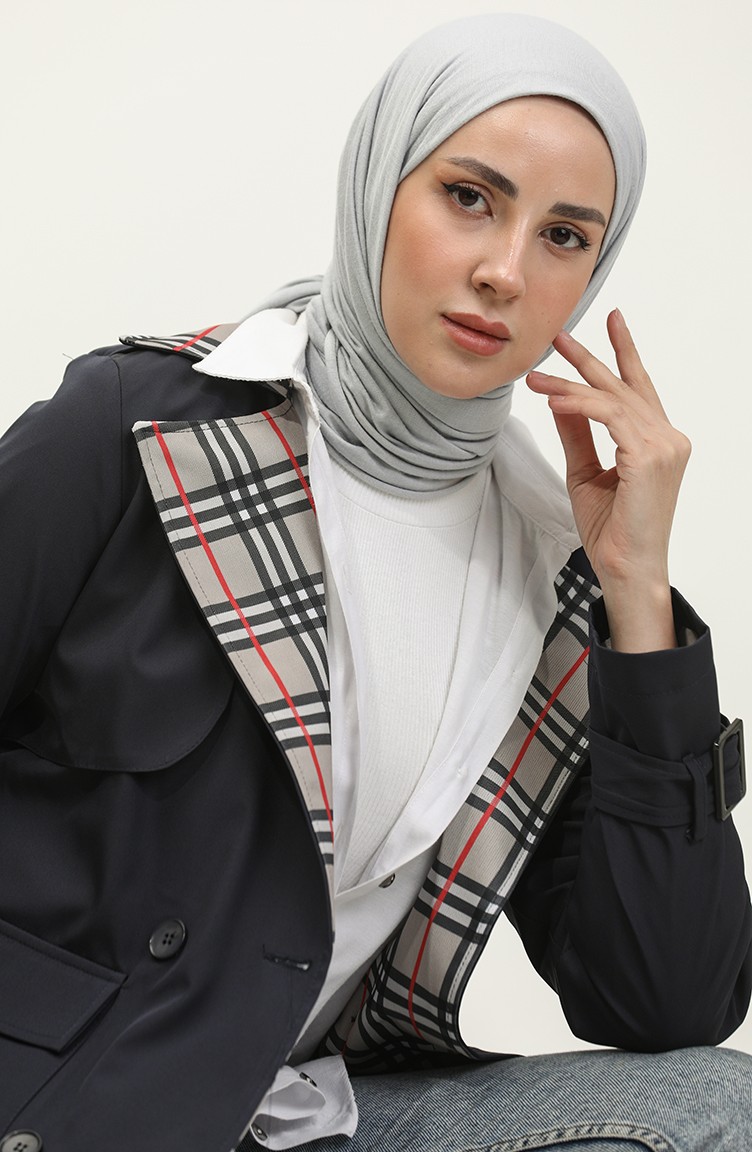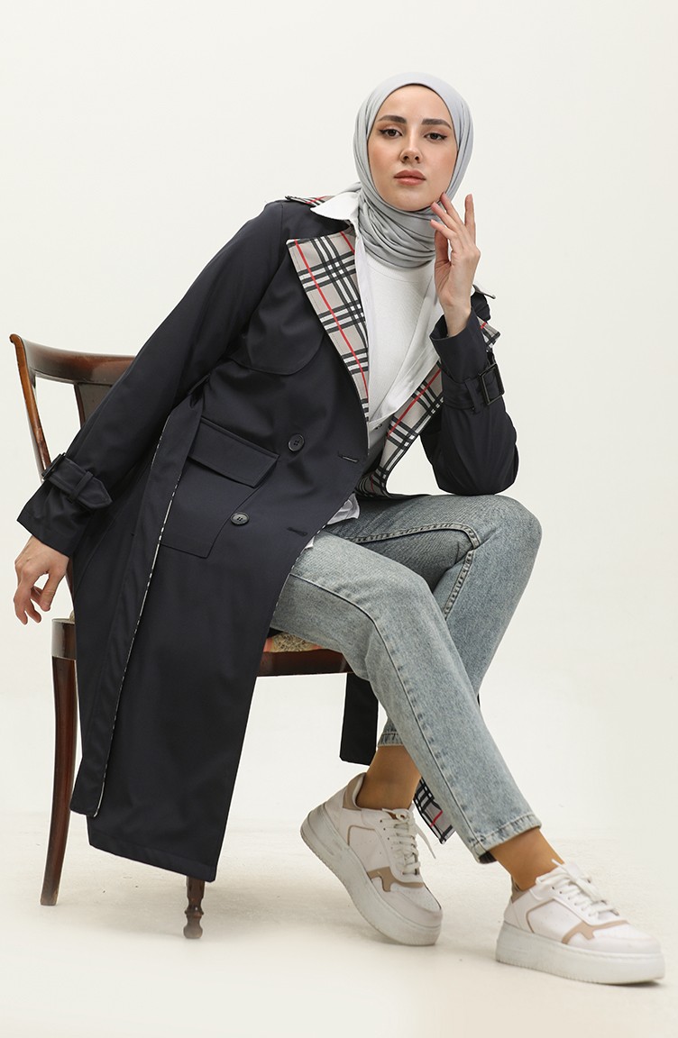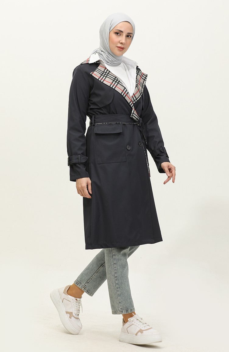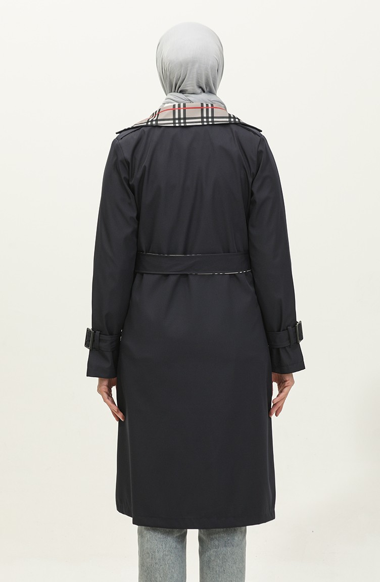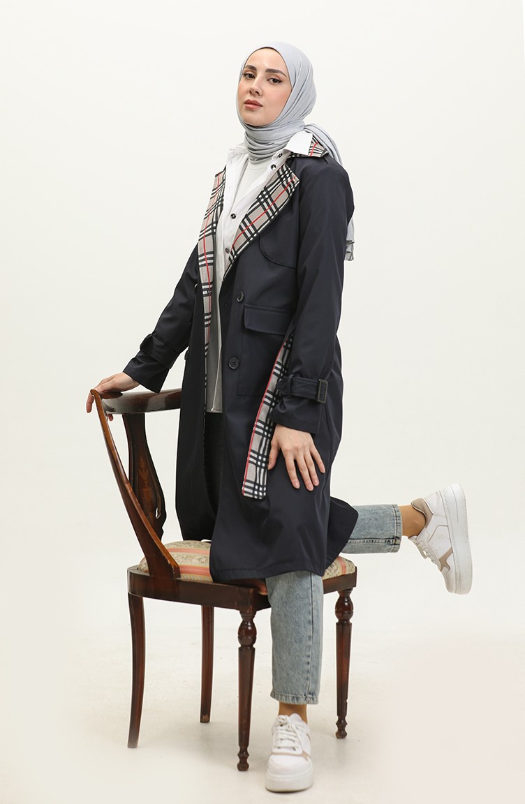 Trench Détaillé Imprimé Bleu Marine K333 493
