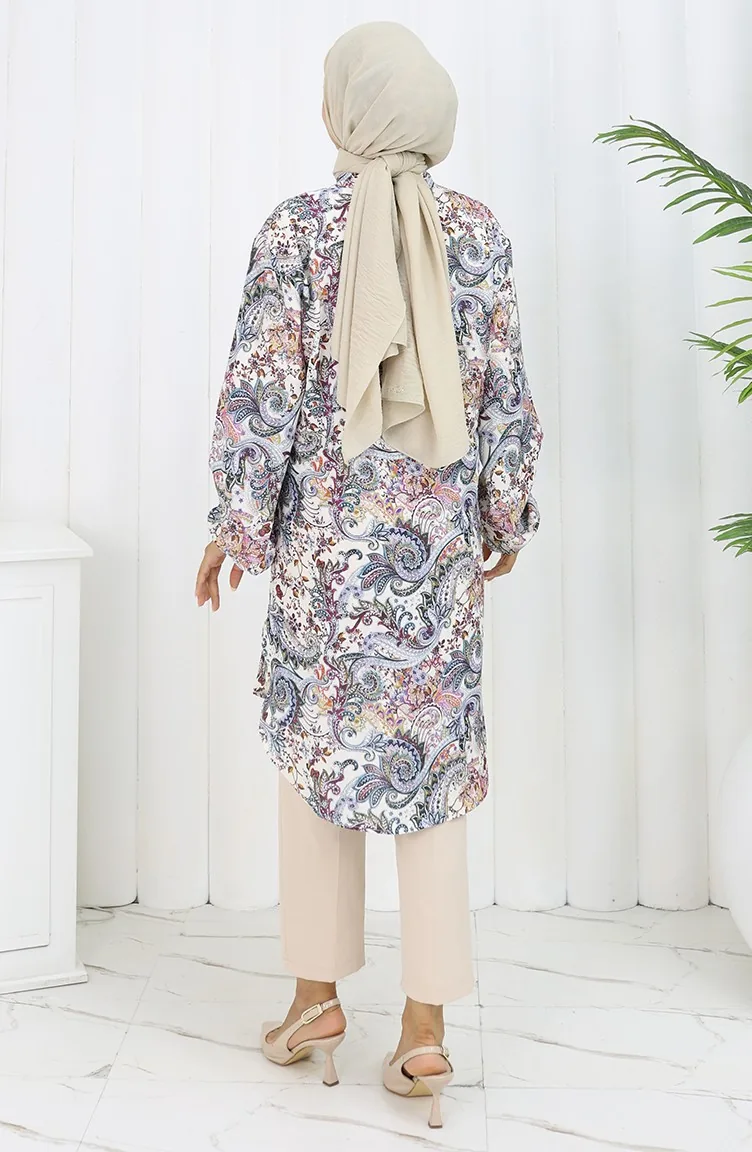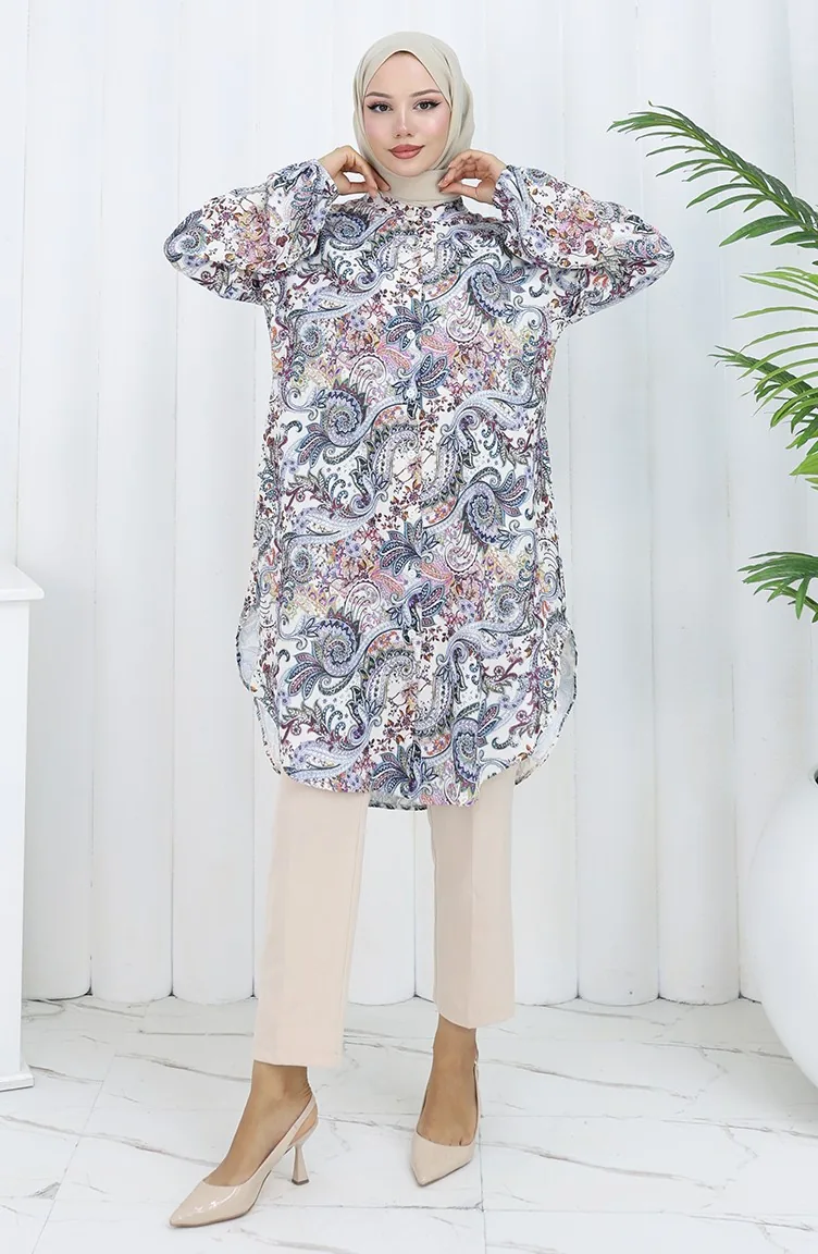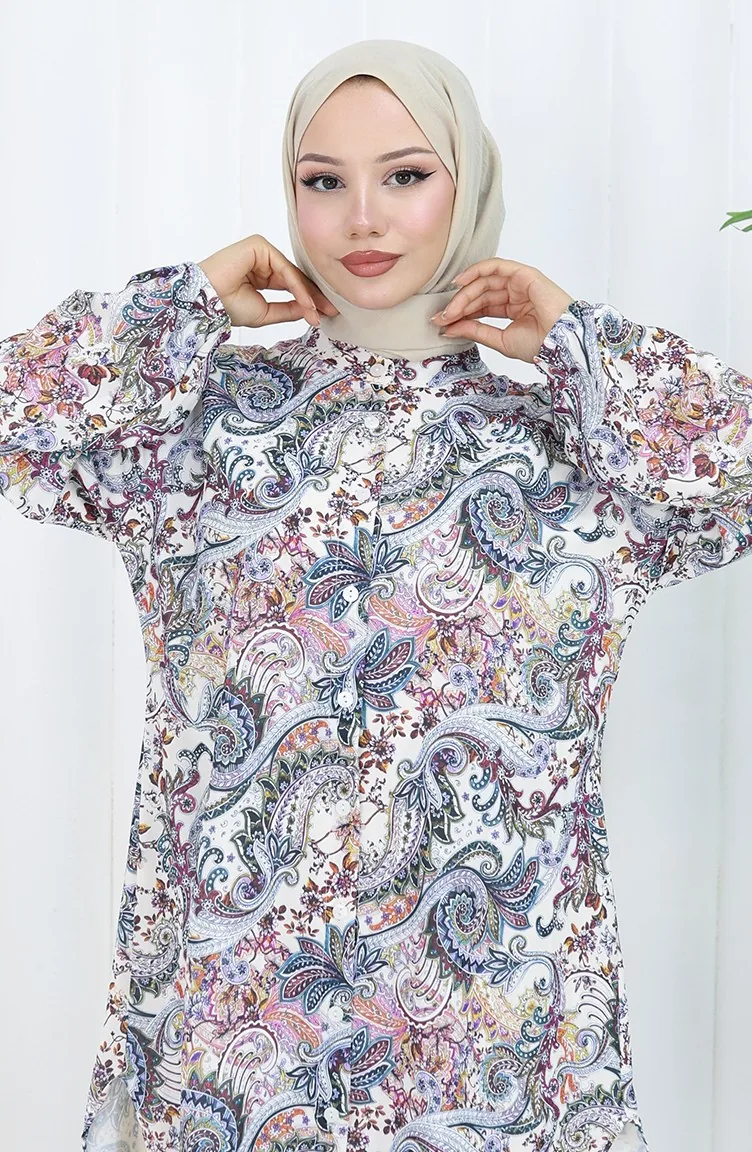Tunique à Motifs Châle Grande Taille 3026-01 Écru 3026-01