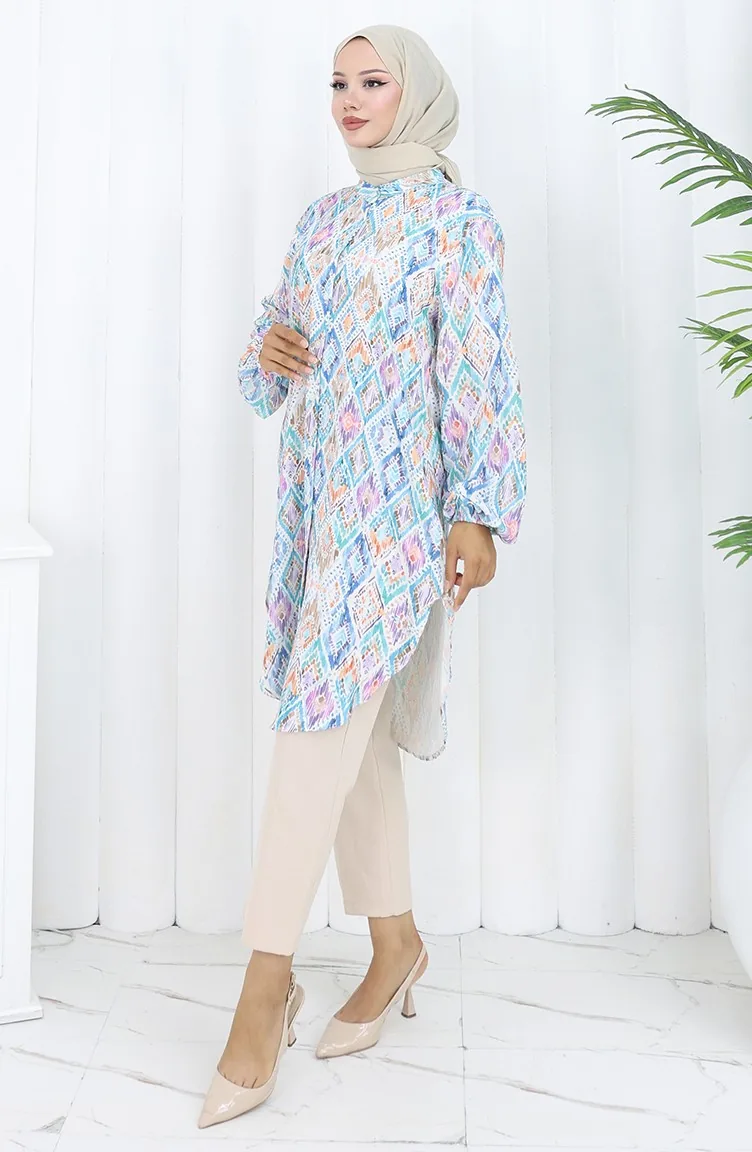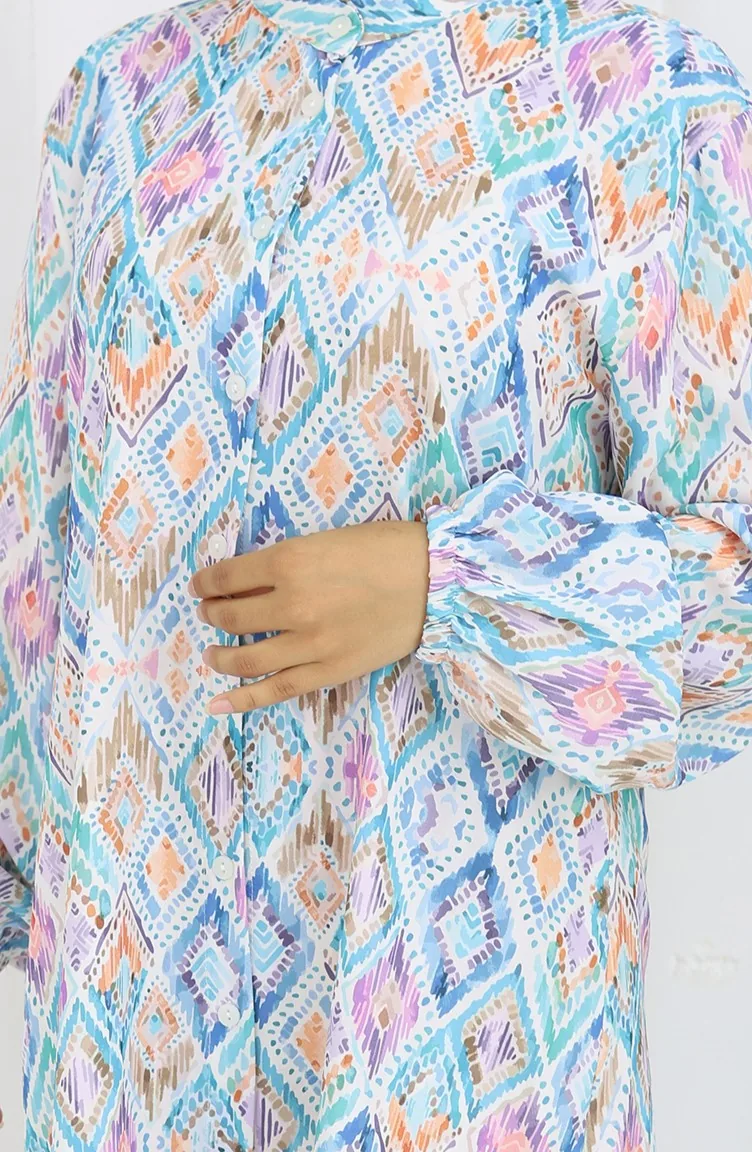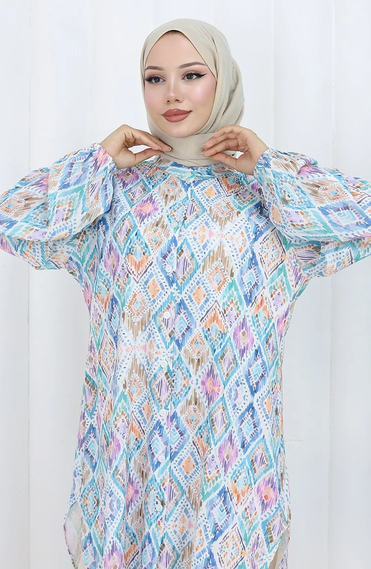 Tunique à Motifs Ethniques Grande Taille 3025-03 Bleu 3025-03