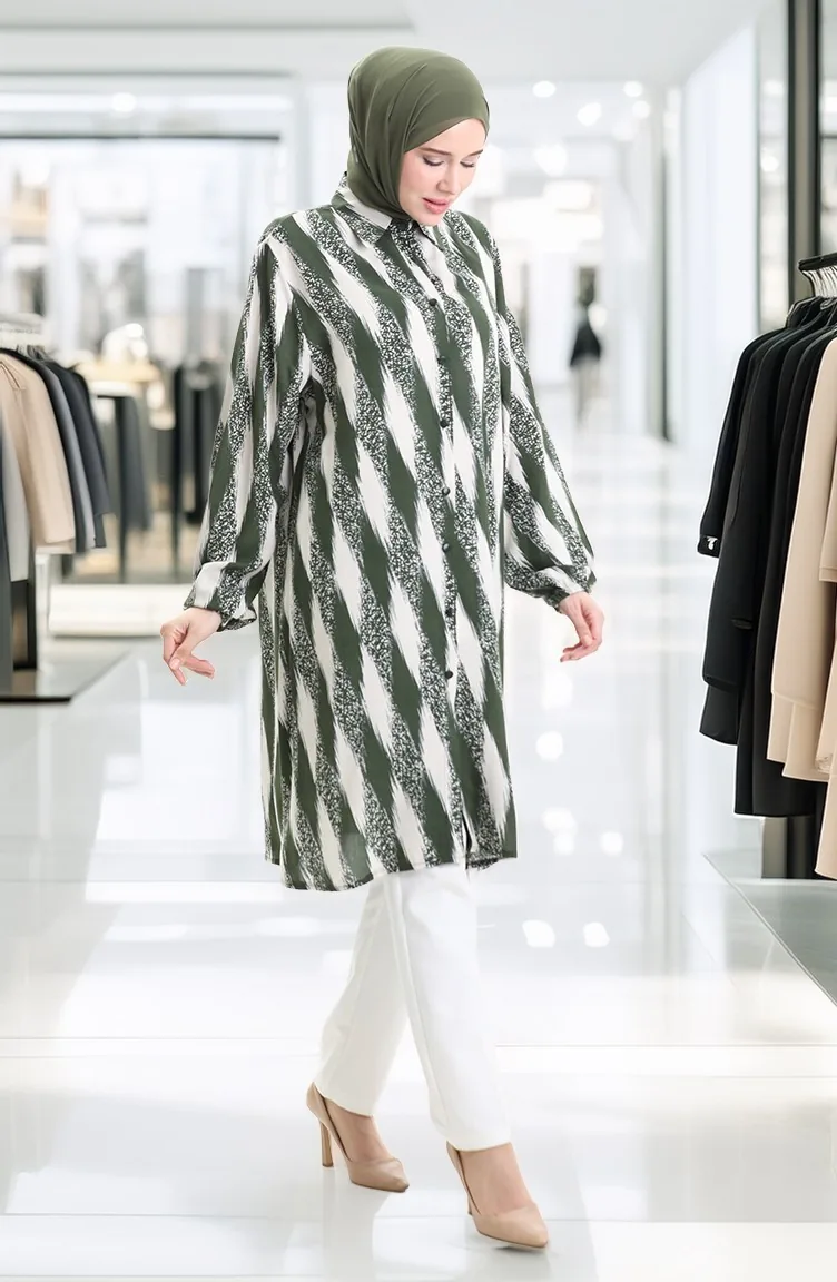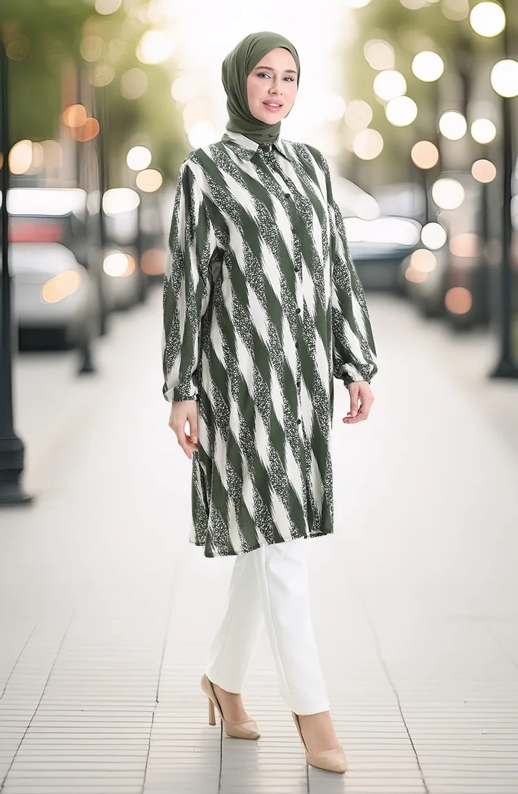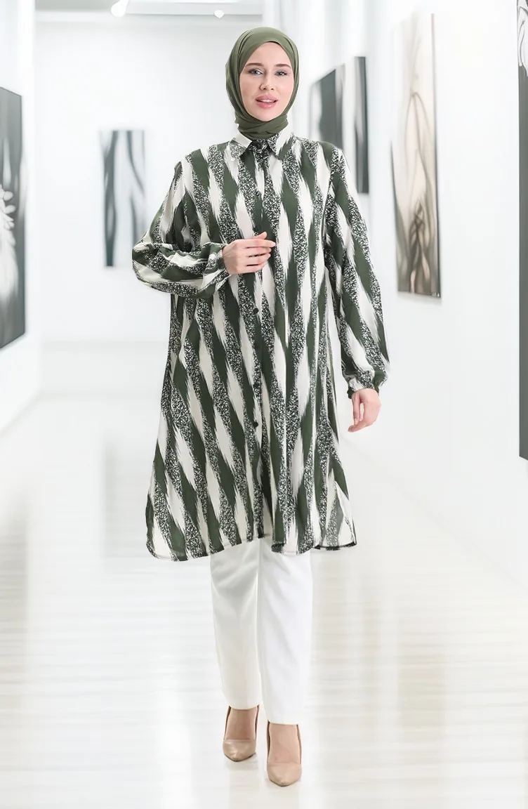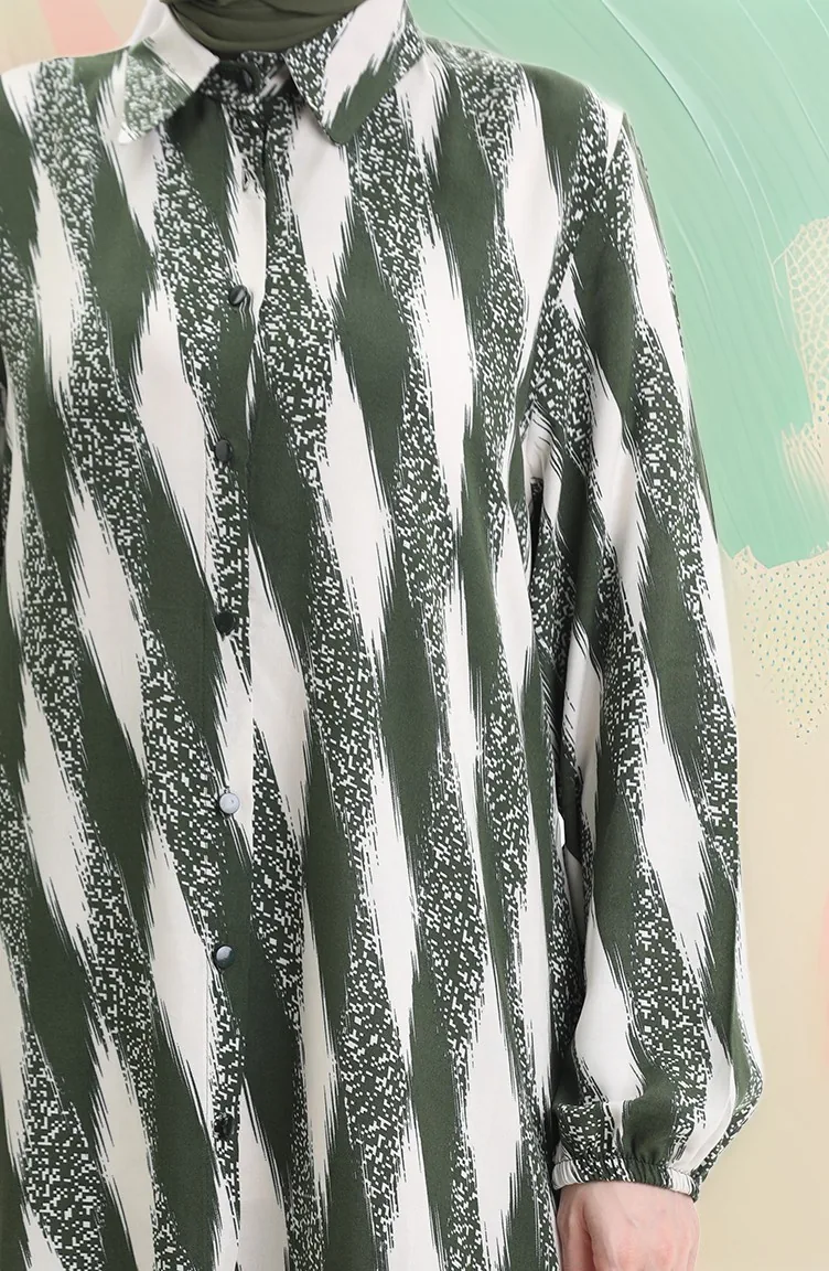 Tunique Boutonnée En Viscose 992032B-02 Kaki 992032B-02