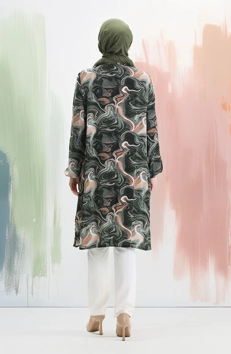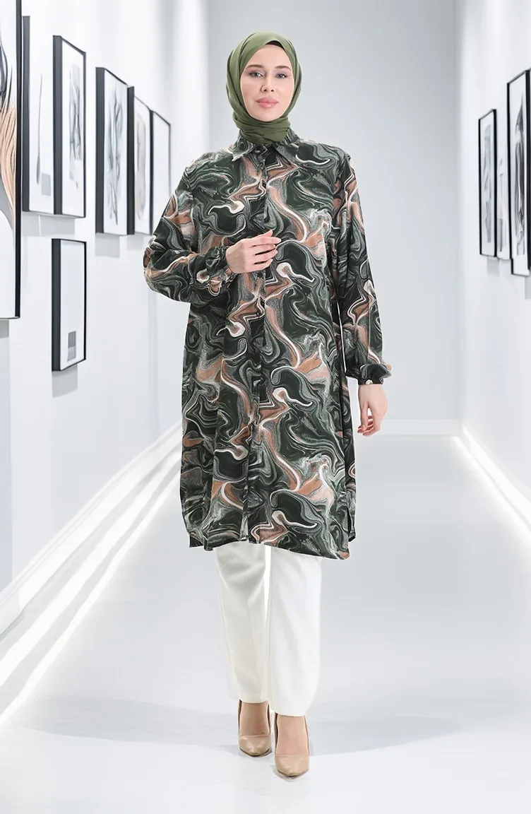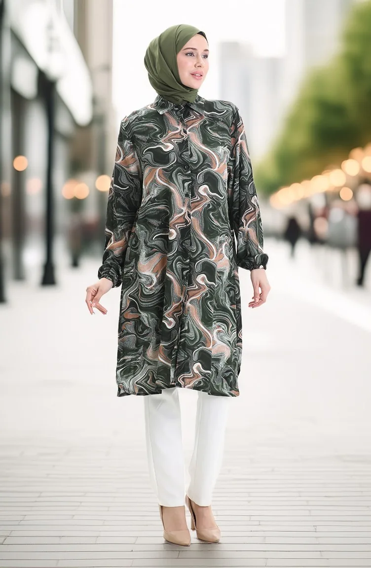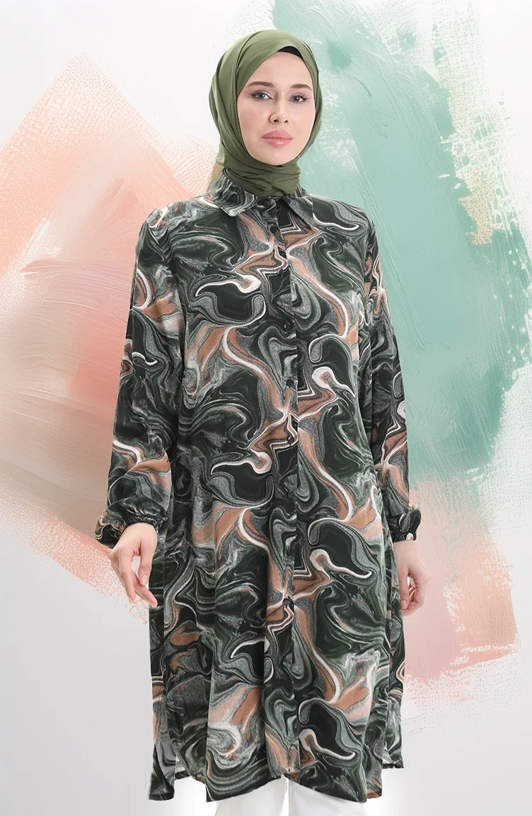 Tunique Boutonnée En Viscose 992032F-04 Kaki Vison 992032F-04
