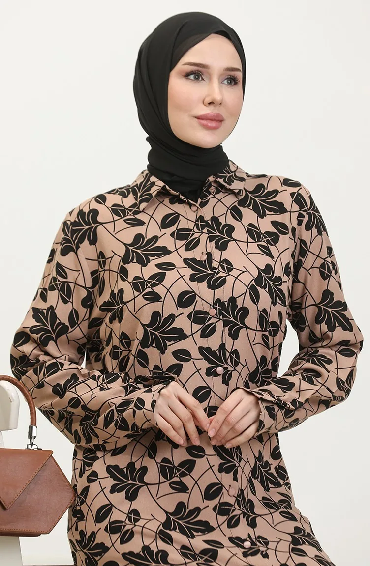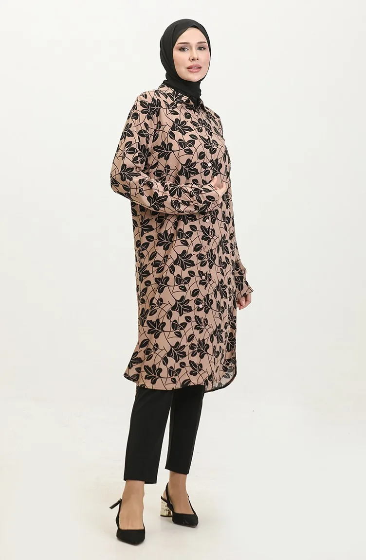 Tunique Chemise à Motifs Grande Taille 2022D-03 Marron 2022D-03