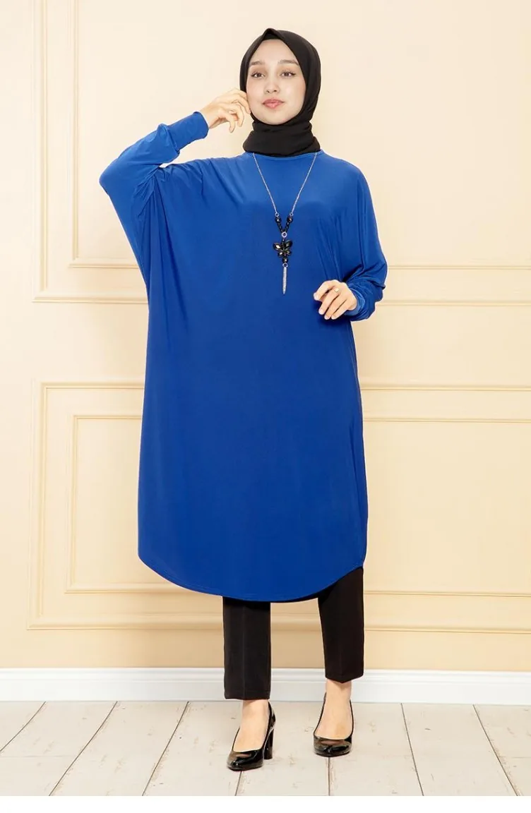 2044Mg Tunique Décontractée à Manches Chauve-souris Bleu Saxe 7729