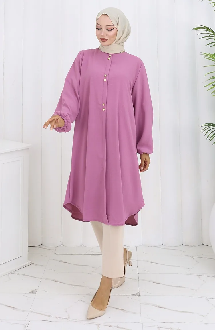 Tunique Aerobin à Boutons Détaillés 0175-06 Rose Poudré 0175-06