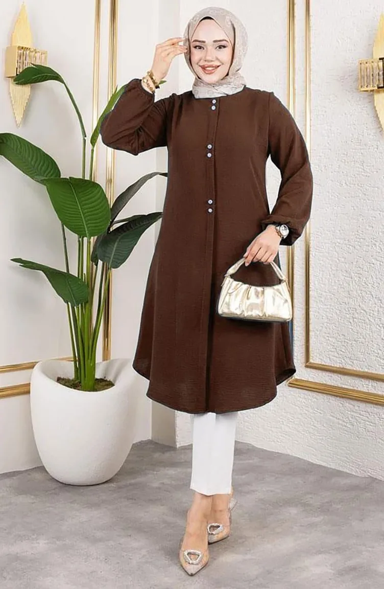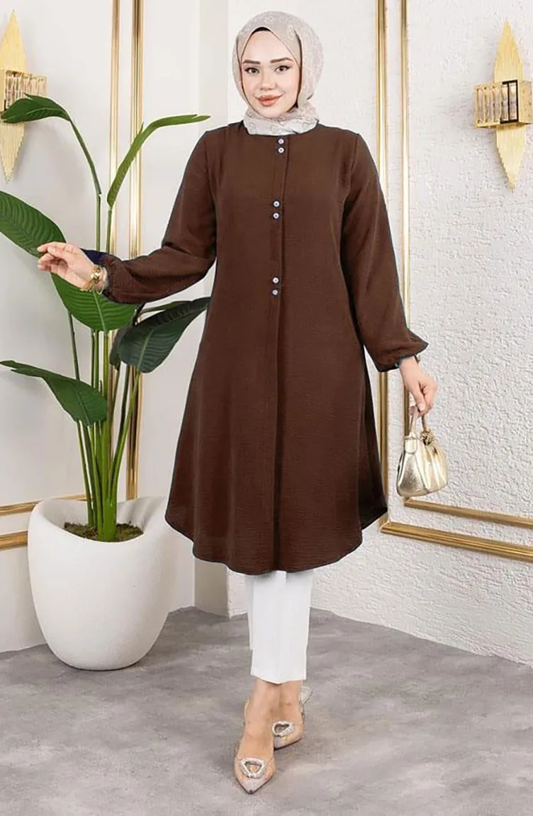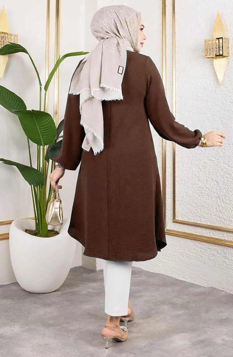 Tunique Aerobin à Boutons Détaillés 0175-09 Marron 0175-09