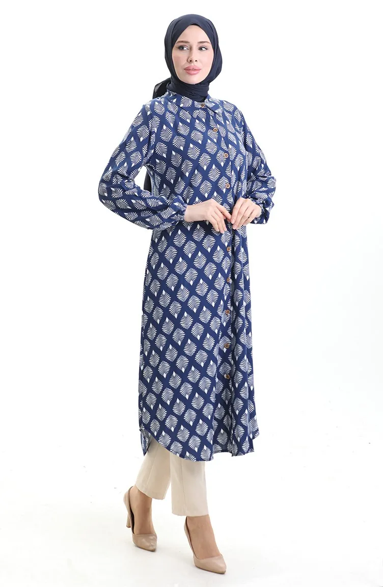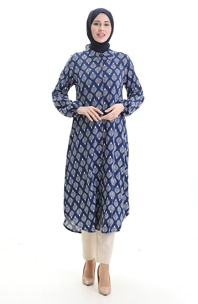 Tunique Longue Boutonnée 0092-03 Bleu Marine 0092-03