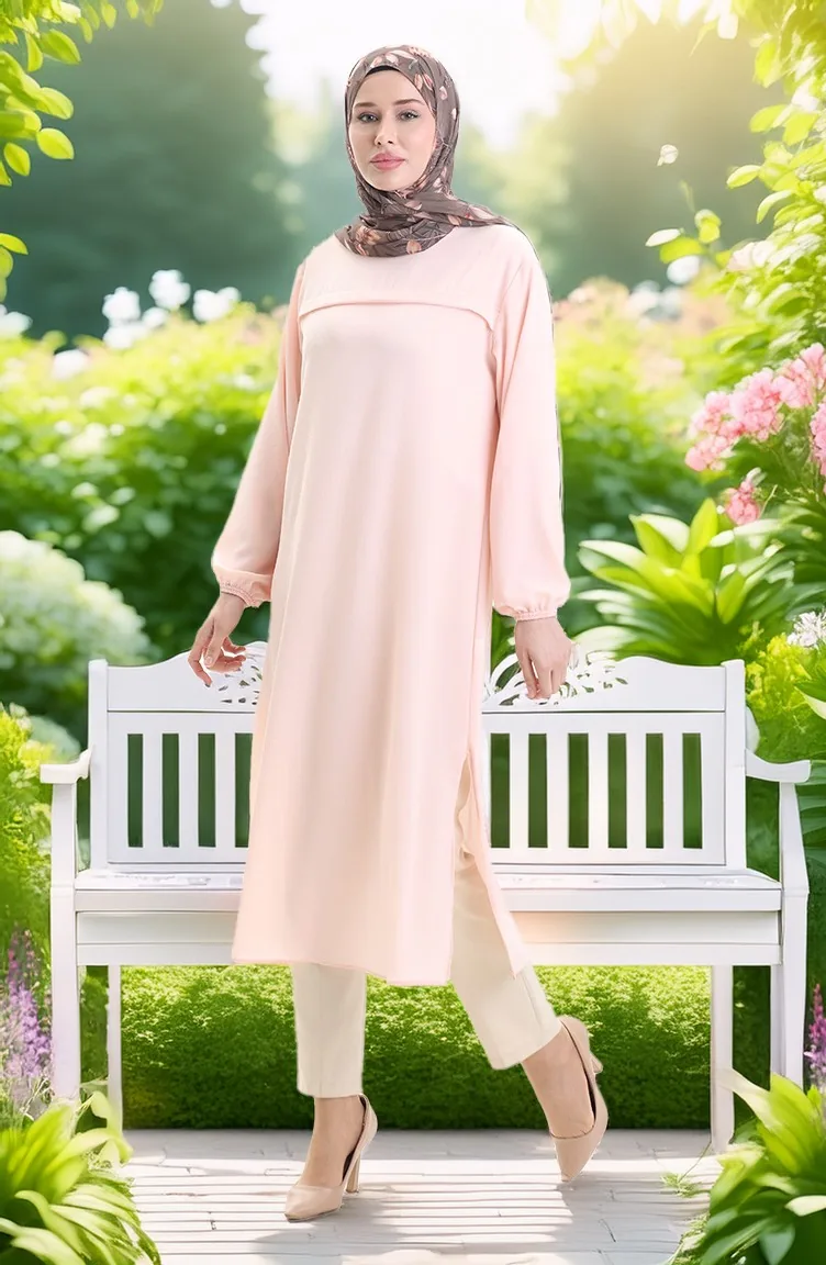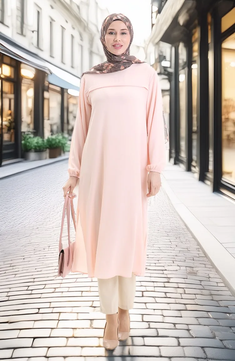 Tunique Longue Fendue Sur Le Côté 4104-08 Poudre 4104-08