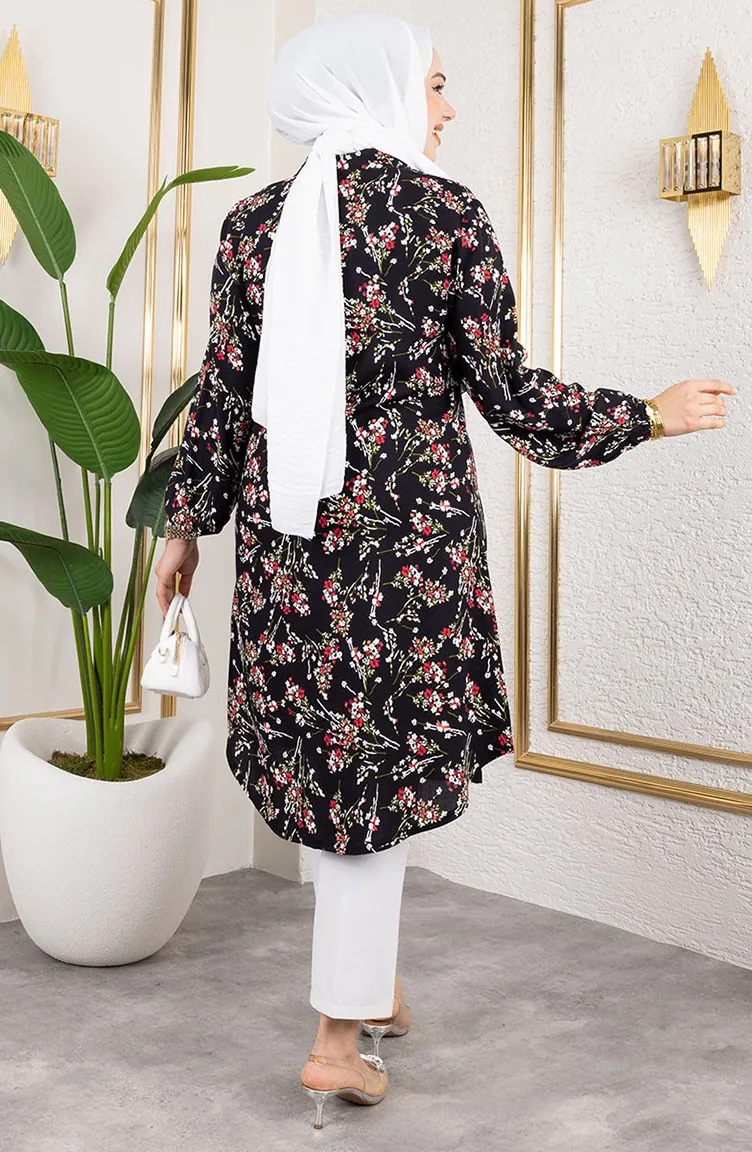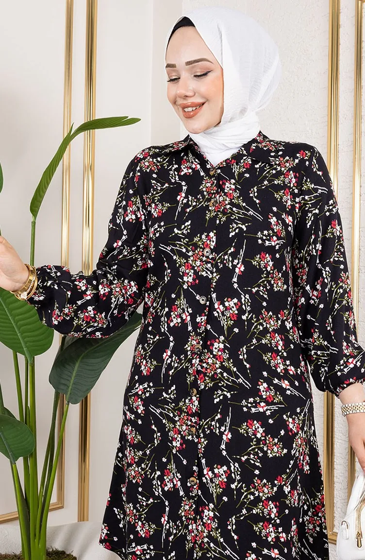 Asel Tunique Viscose Fleurie 0174-05 Noir 0174-05