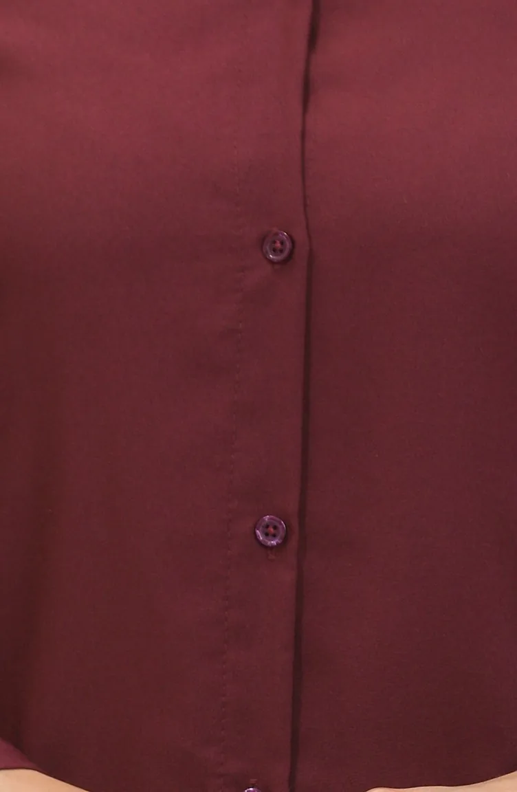 Couleur Plum. Tissu de coton. Simple. Avec boutons. Manches longues. Col officier. d'été. Option de grande taille disponible.