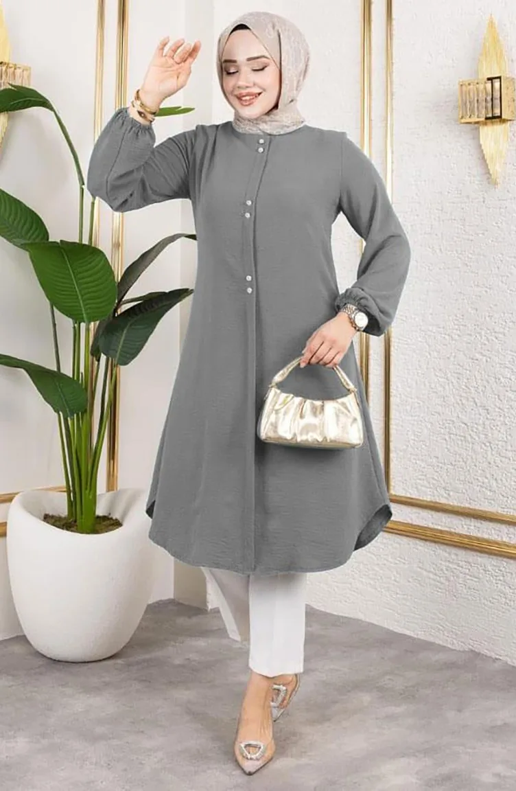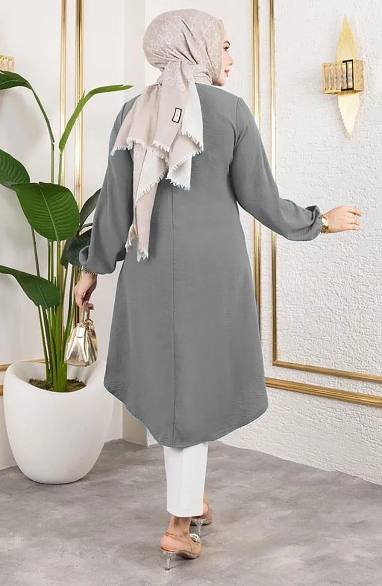 Tunique Aerobin à Boutons Détaillés 0175-12 Gris Clair 0175-12