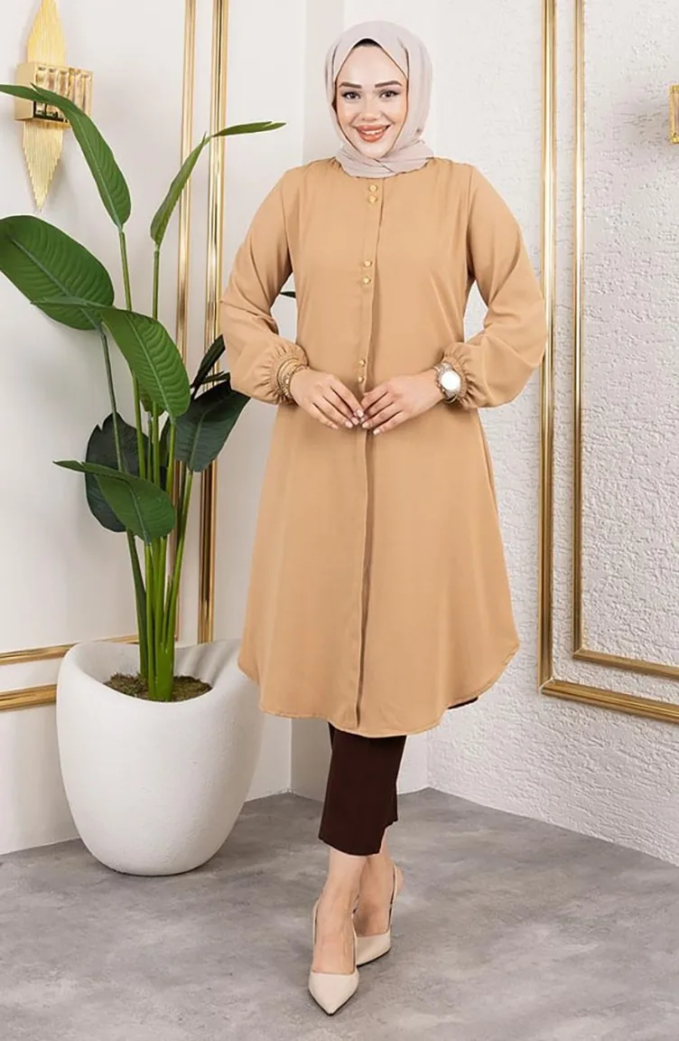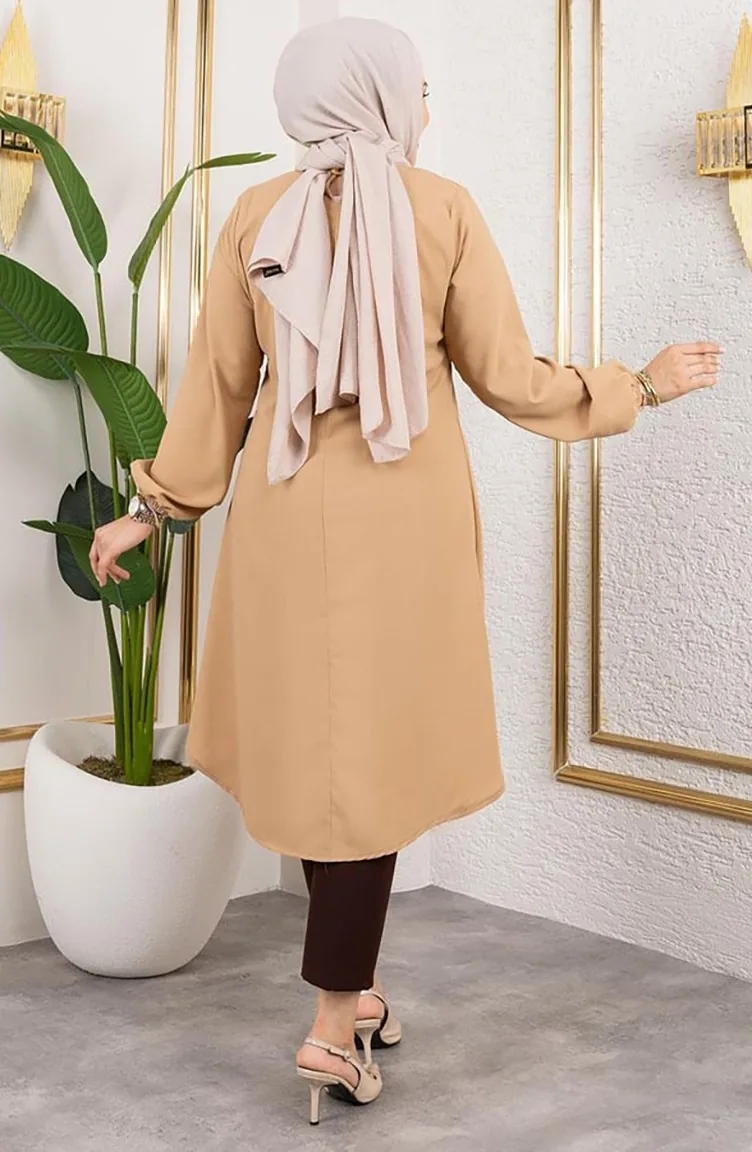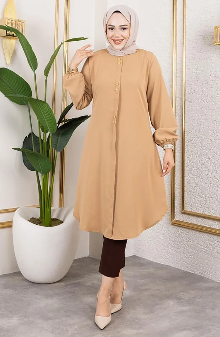 Tunique Aerobin à Boutons Détaillés 0175-14 Camel 0175-14