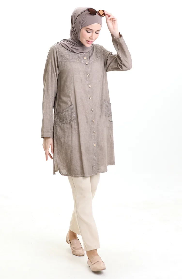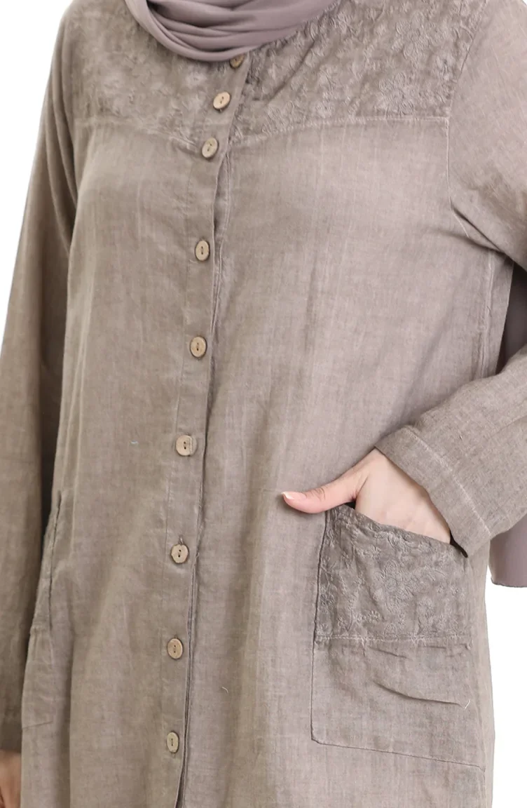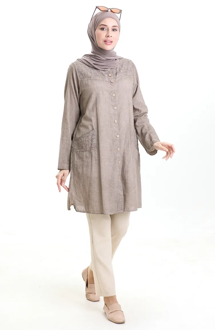 Couleur Beige. Şile Bezi. Simple. Avec boutons. Col Zéro. d'été. Produit porté par le mannequin est sa propre taille.