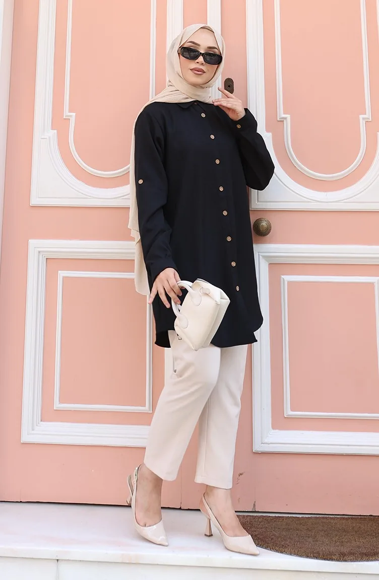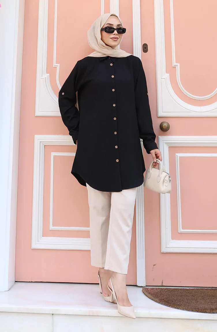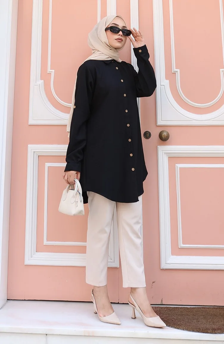 Tunique Boutonnée 0147-01 Noire 0147-01