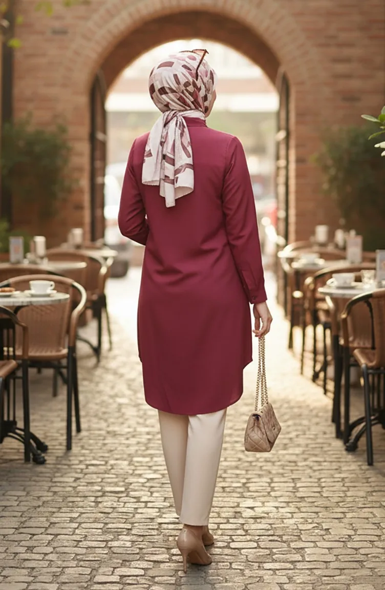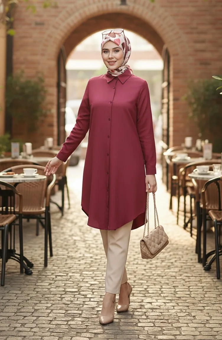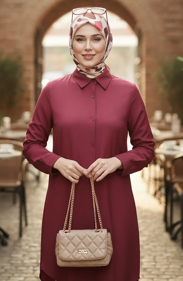Tunique Boutonnée En Viscose 6116-03 Rouge Bordeaux 6116-03