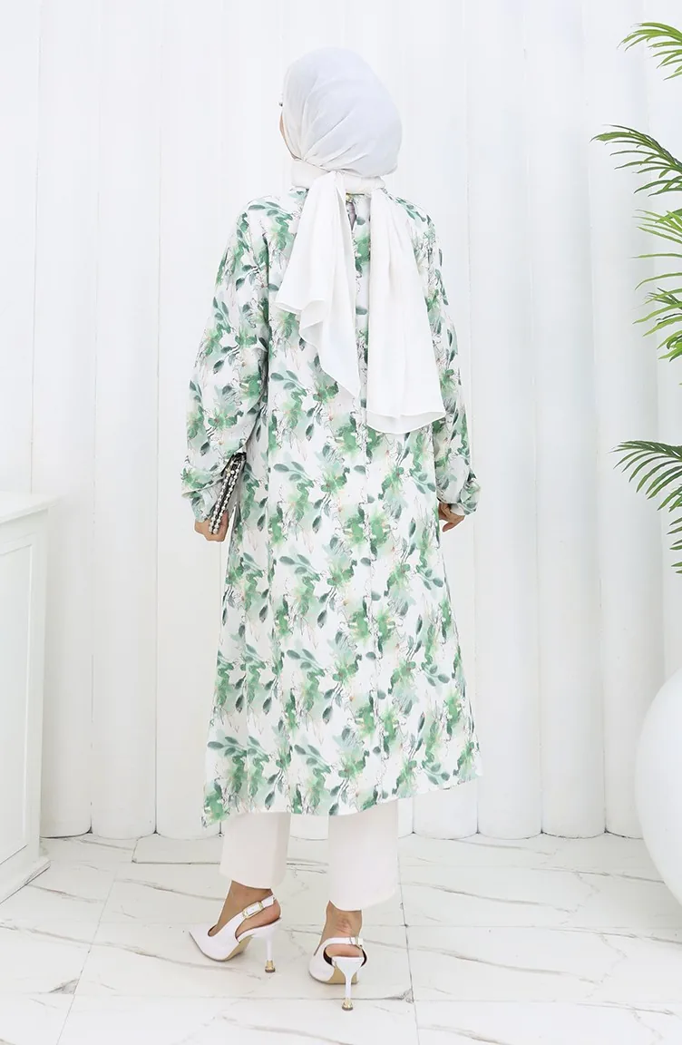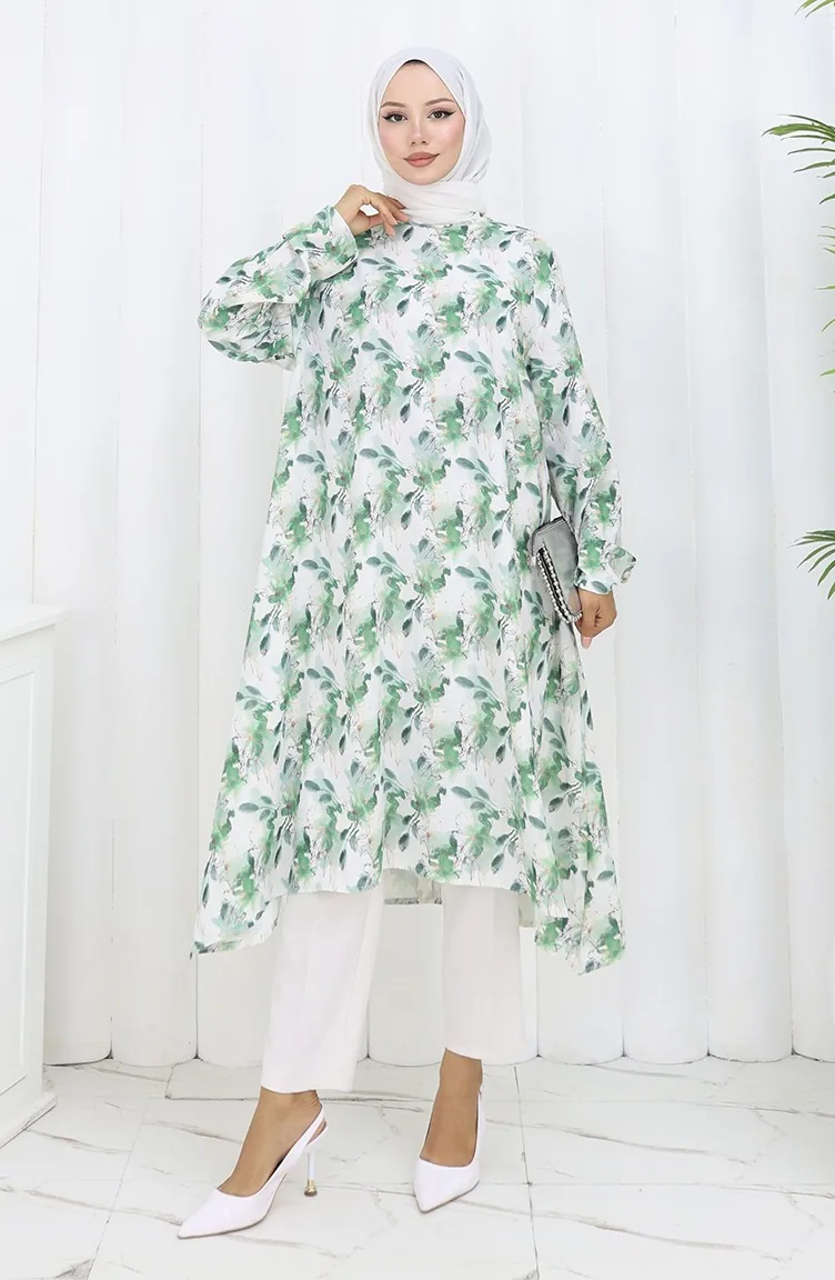 Tunique En Crêpe à Motifs 1014-03 Vert 1014-03