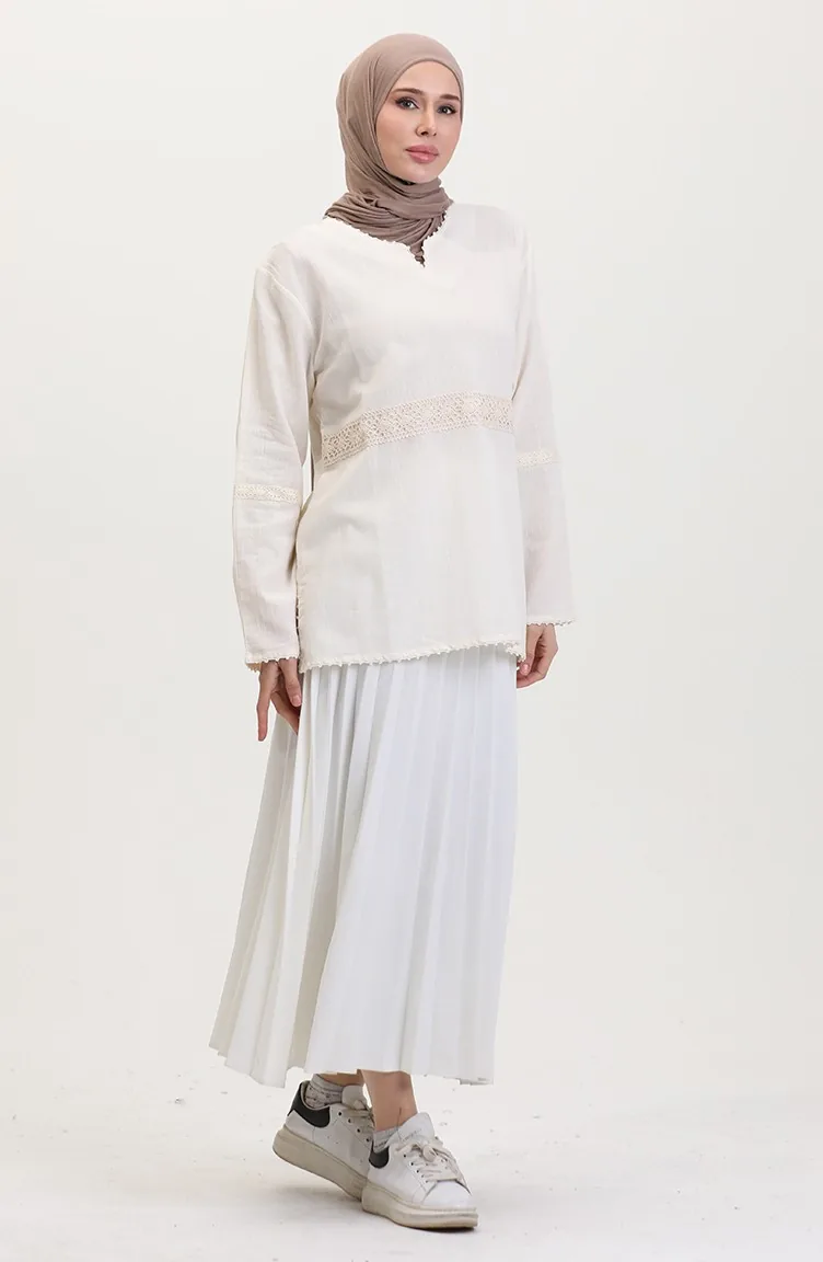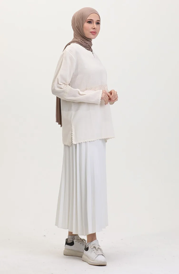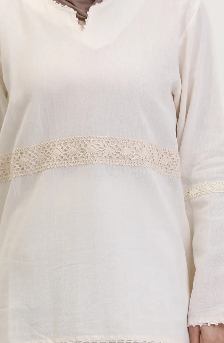 Tunique En Dentelle Et Tissu Şile 0317-05 Crème 0317-05