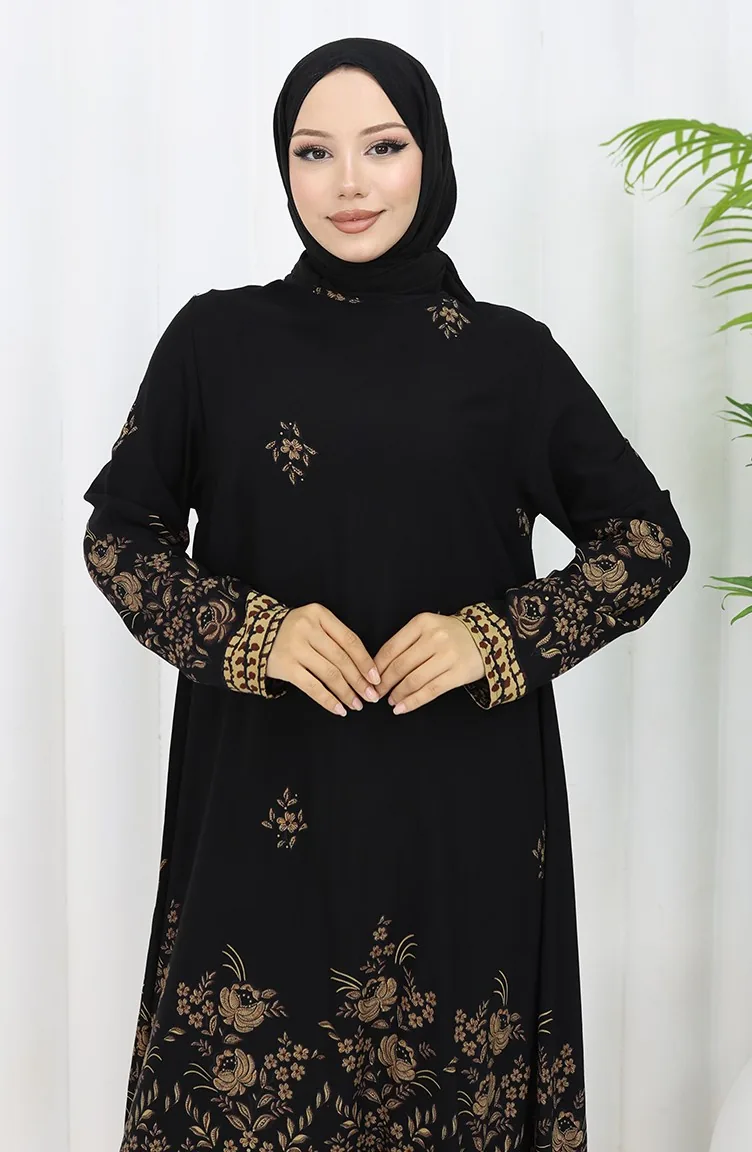 Tunique En Viscose à Motifs Floraux 1004-05 Noir 1004-05