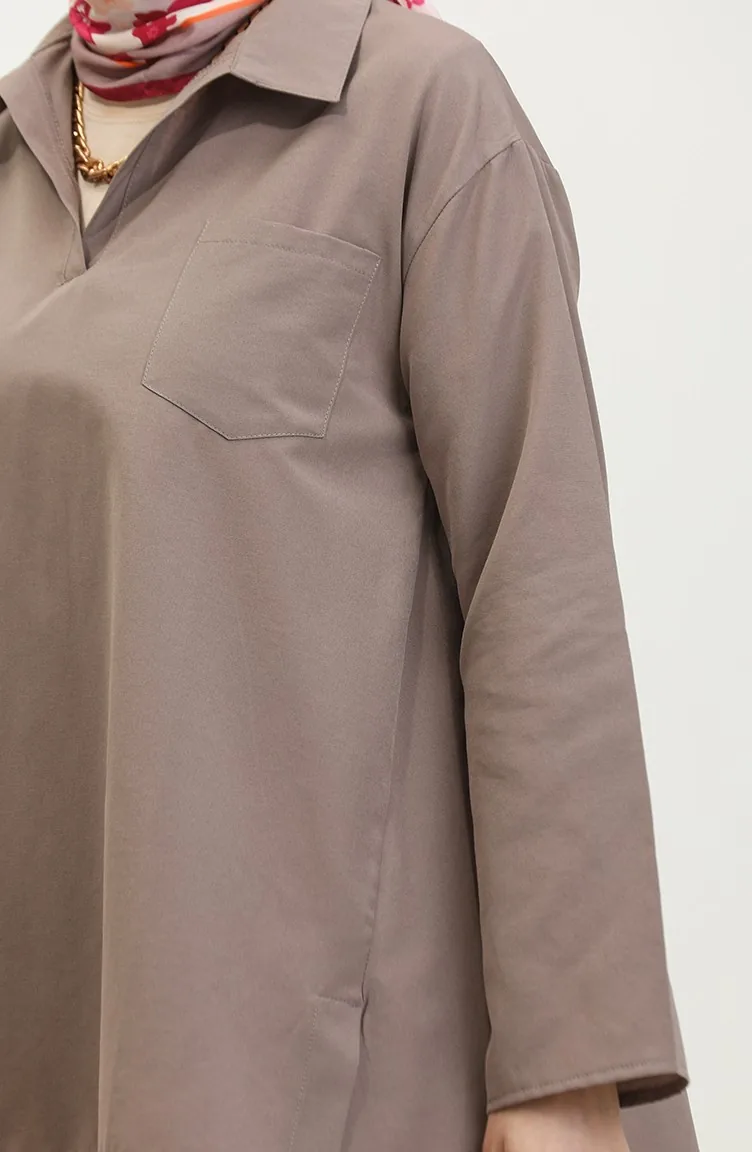 Couleur Vison. Tissu de coton. Simple. Sans doublure. Manches longues. Col Chemise. Adapté pour les 4 saisons. Produit porté par le mannequin est sa propre taille.
