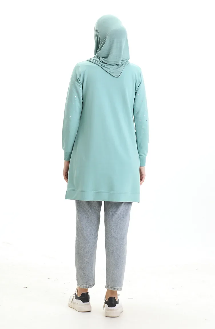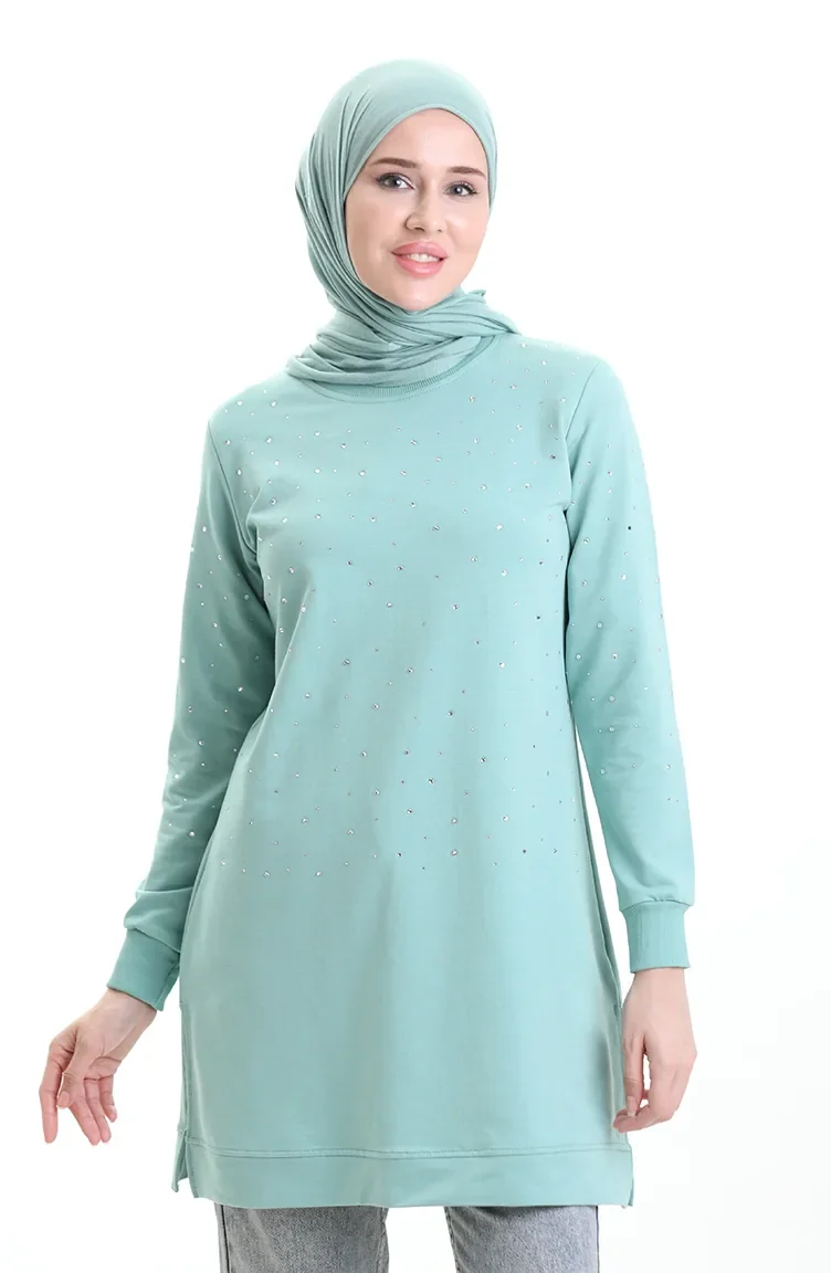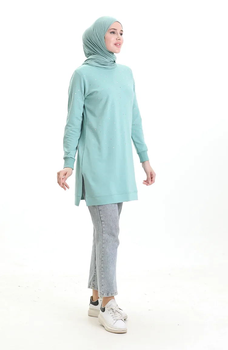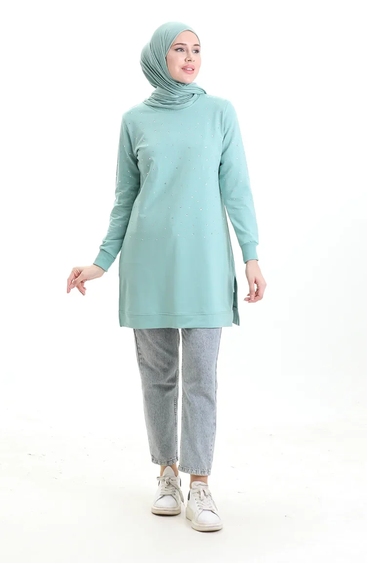 Tunique Côtelée Fendue 9118-05 Çağla Yeşil 9118-05