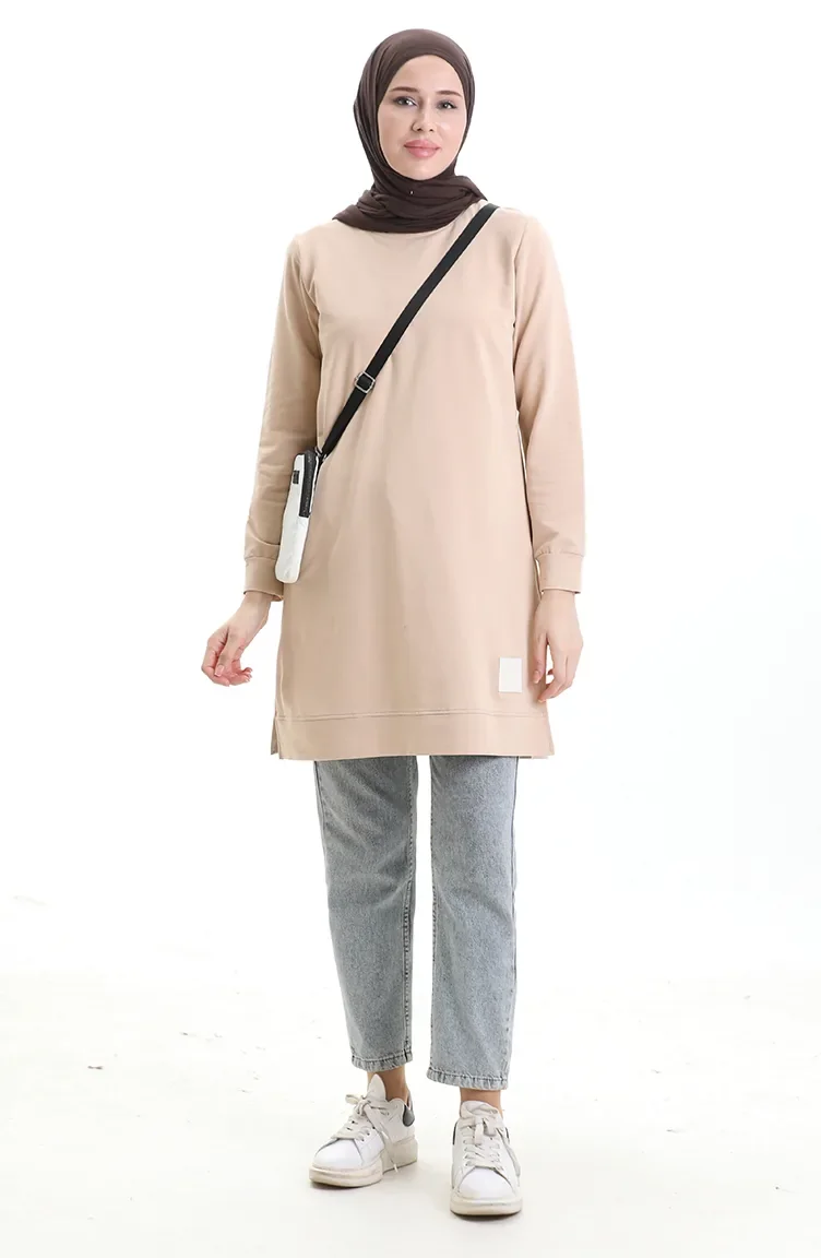 Tunique Fendue Détaillée 9084-04 Vison 9084-04