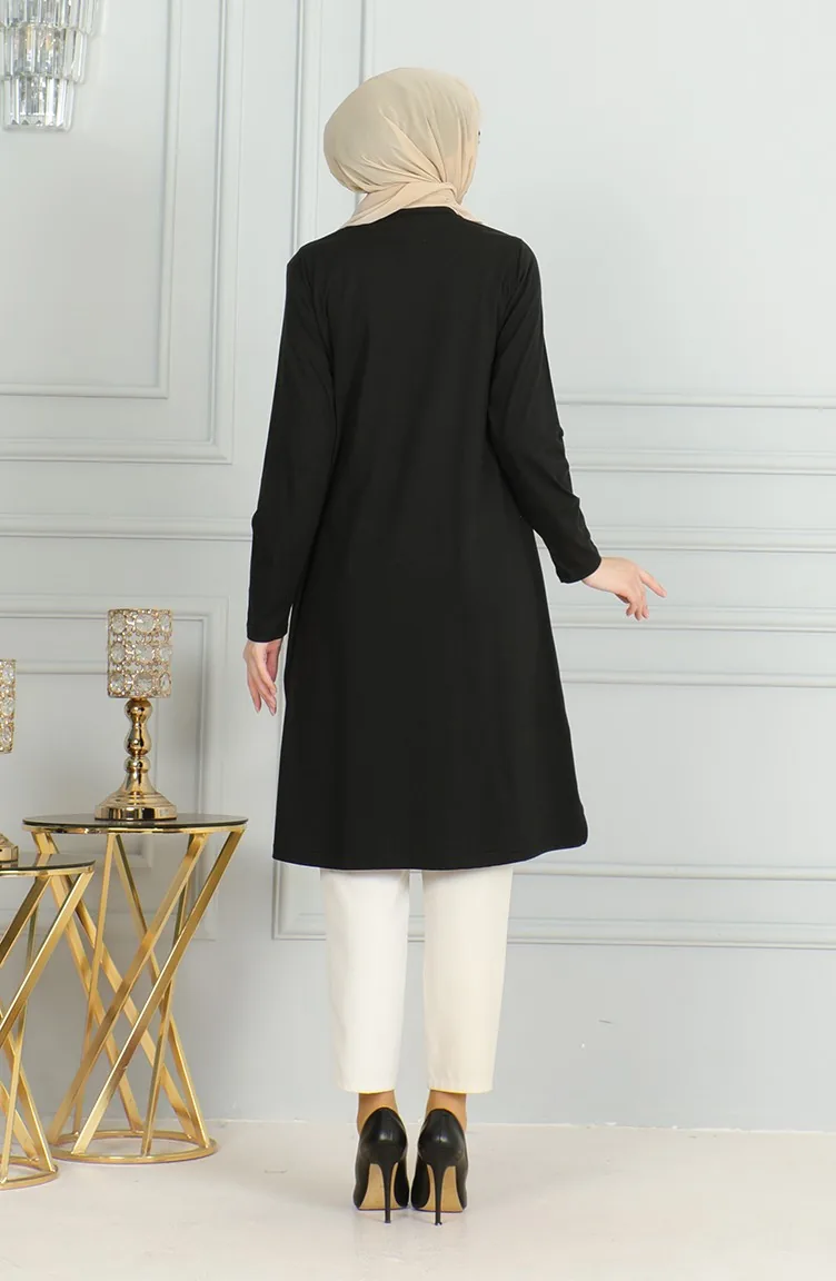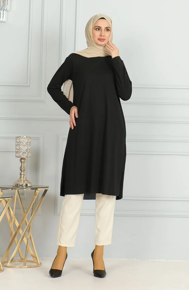 Tunique Longue Fendue 9141-05 Noir 9141-05