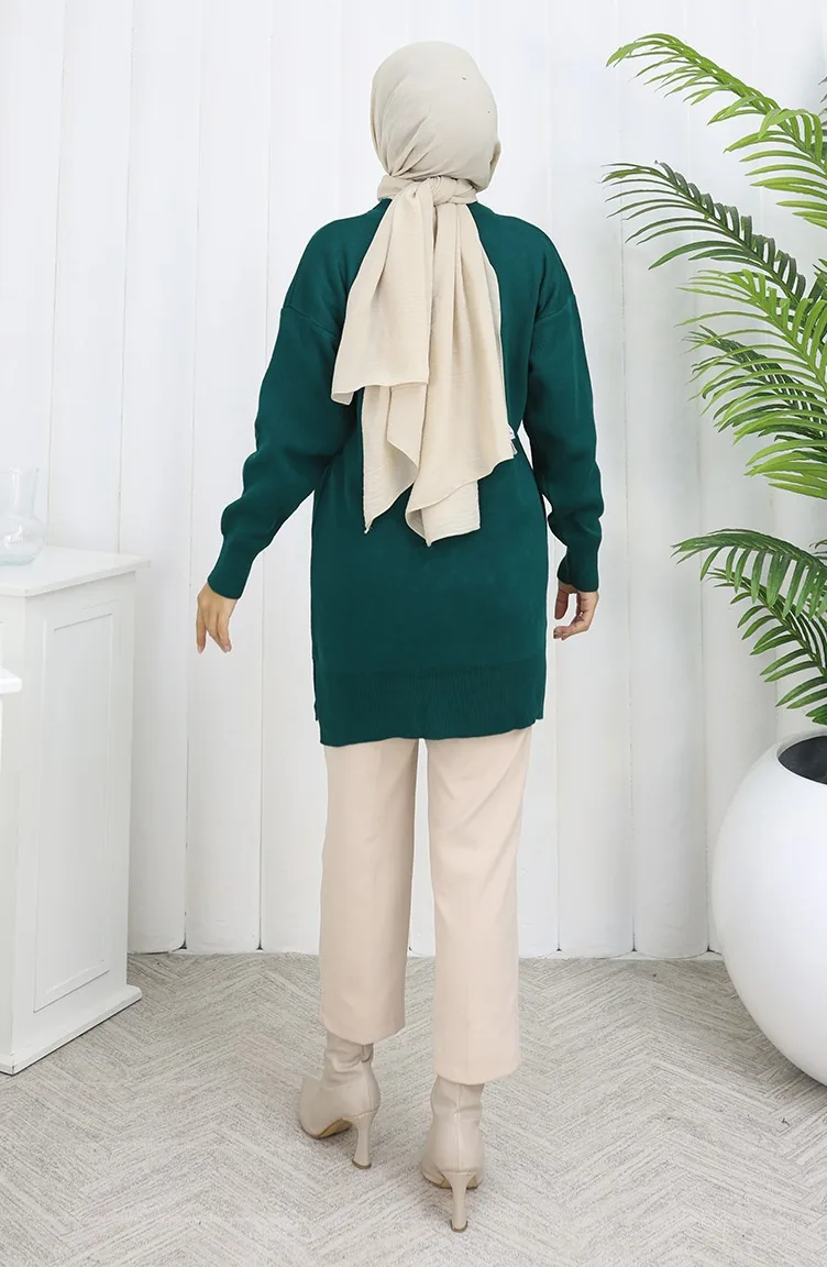 Tunique En Tricot Avec Poche Kangourou Et Détails En Perles 3030-06 Pétrole 3030-06