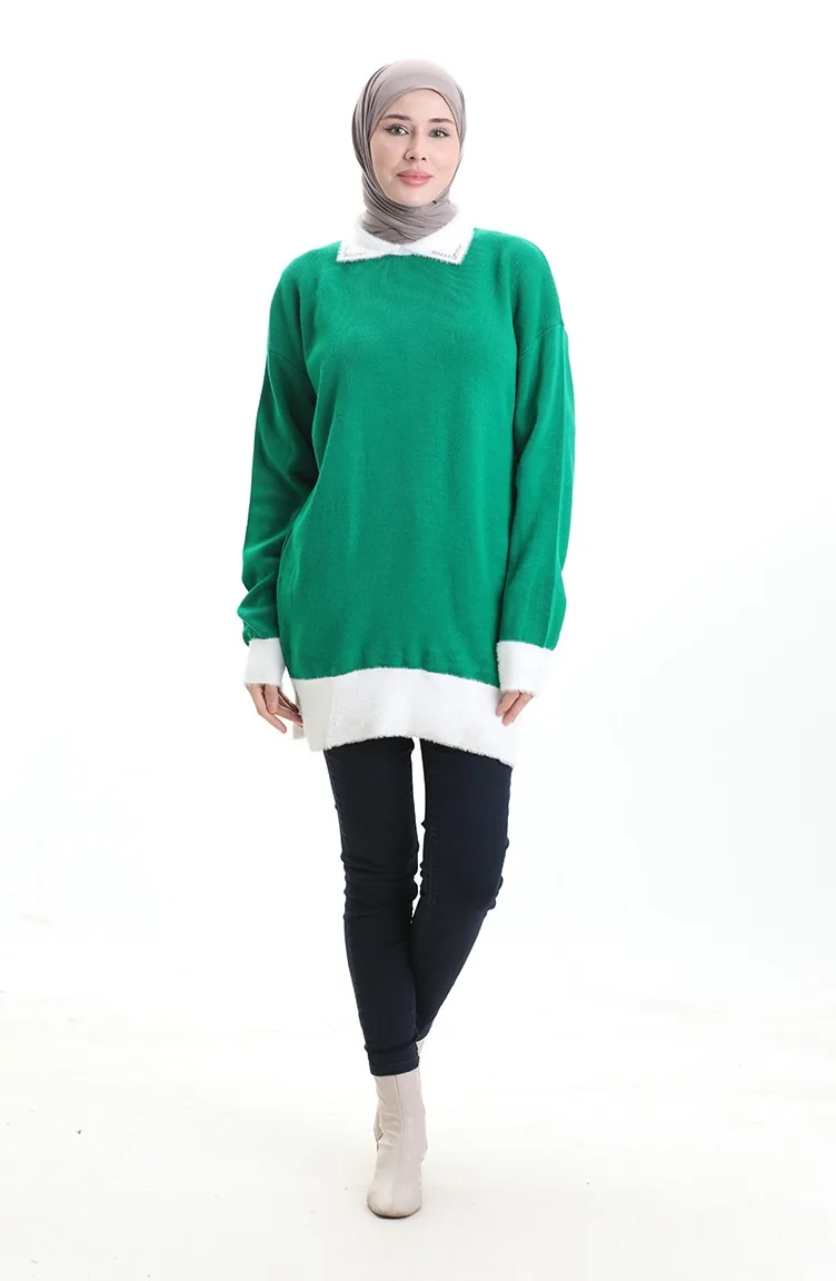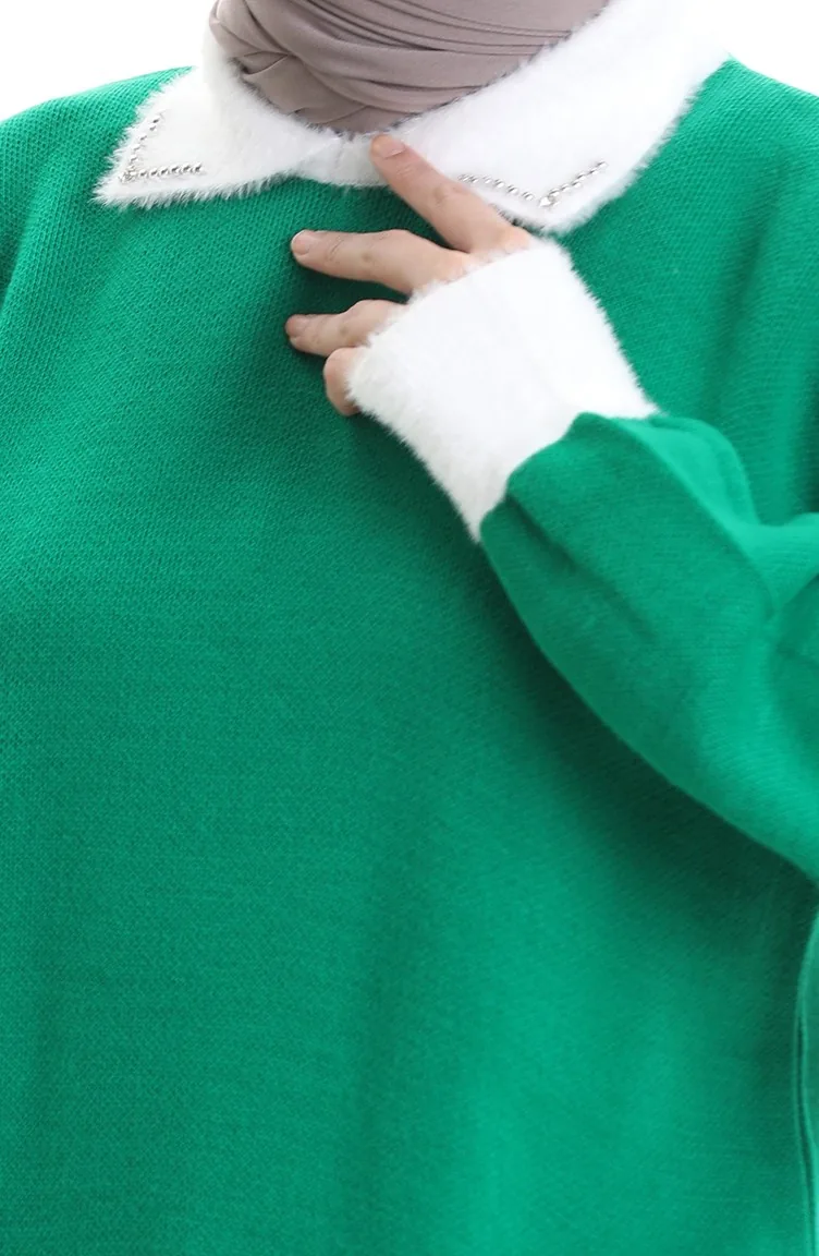 Tunique Tricotée Ornée De Perles 3002-08 Vert émeraude 3002-08