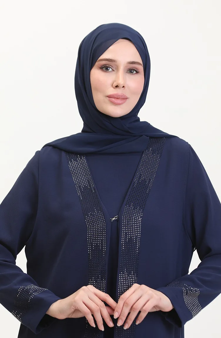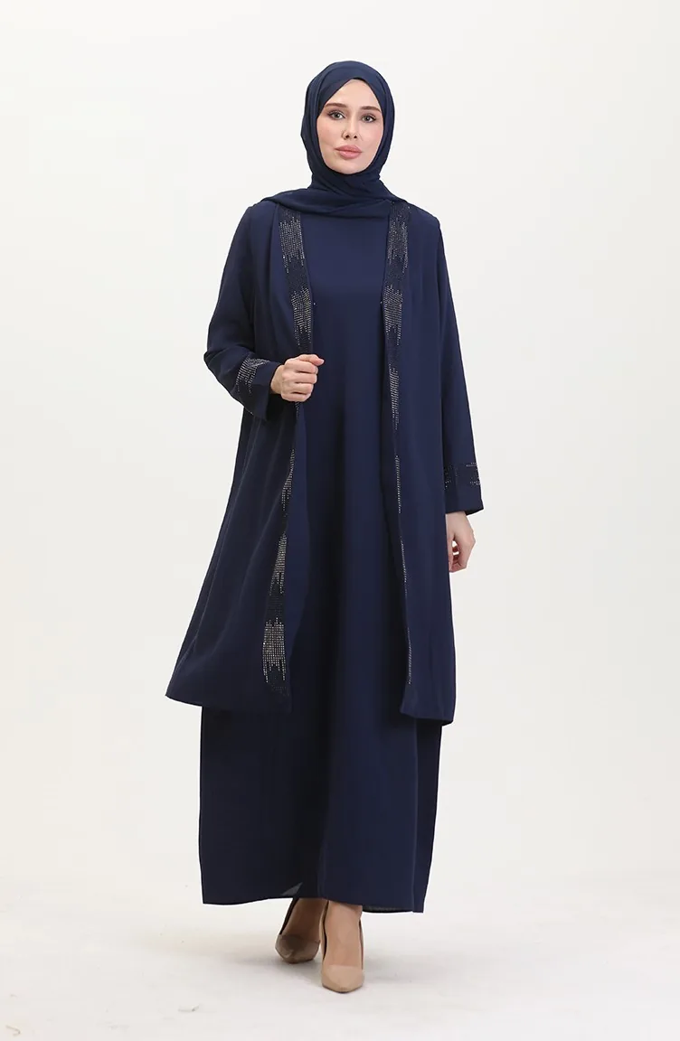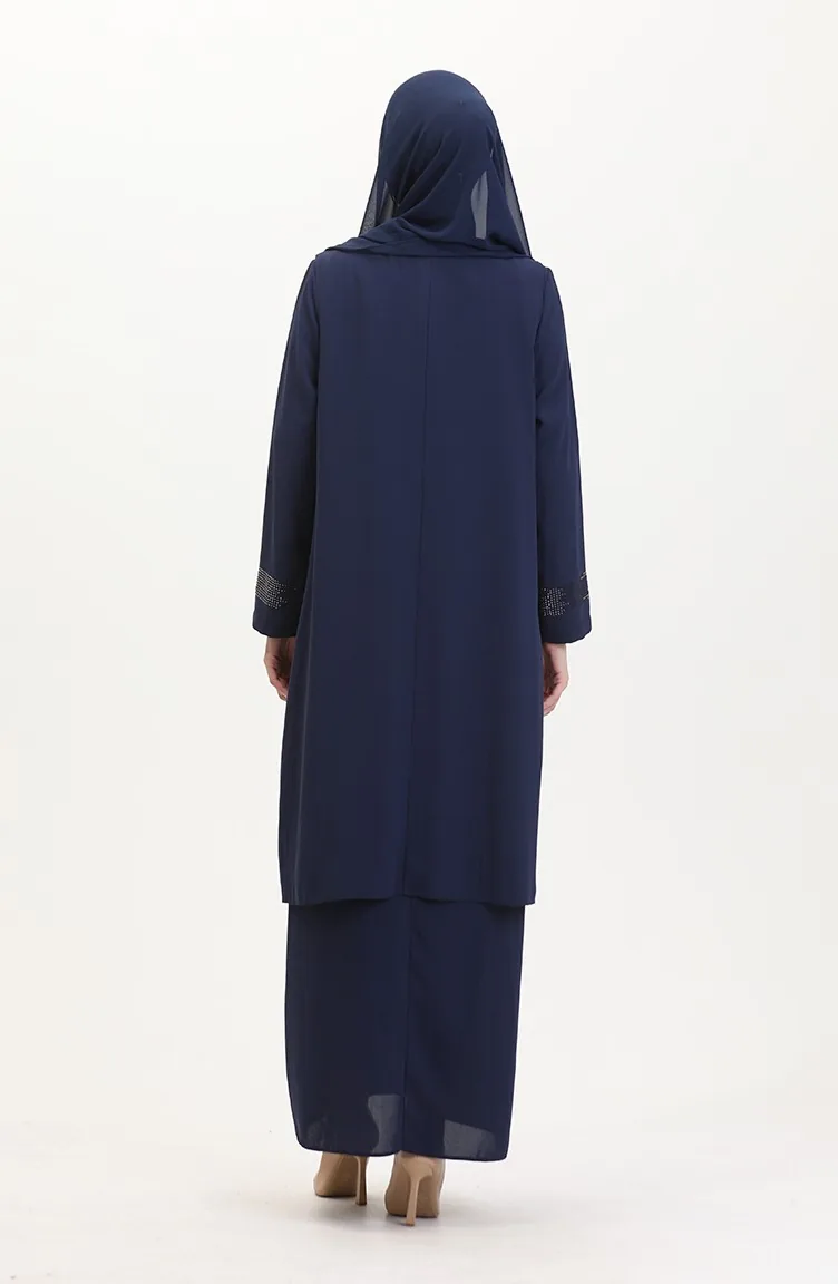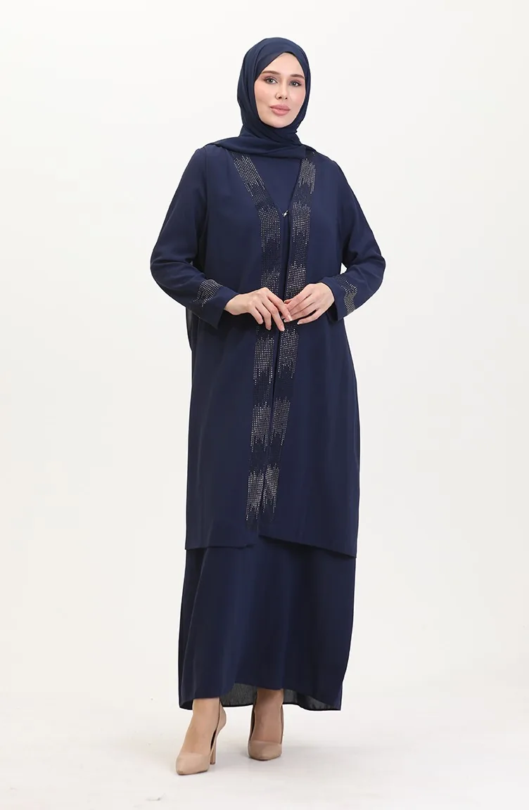 Ensemble Deux Pièces Robe Gilet Grande Taille 6140-08 Bleu Marine 6140-08