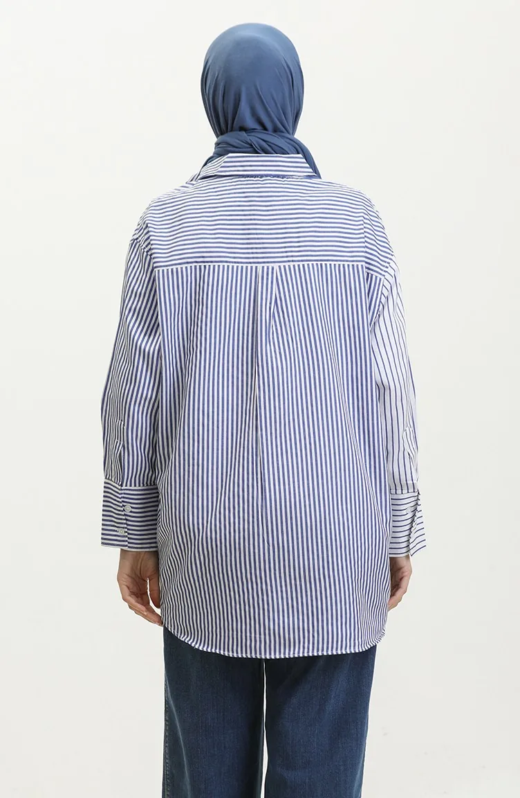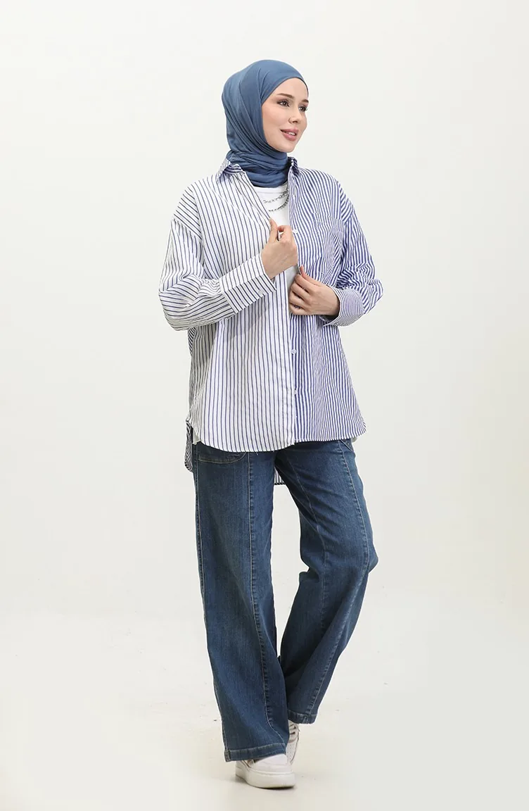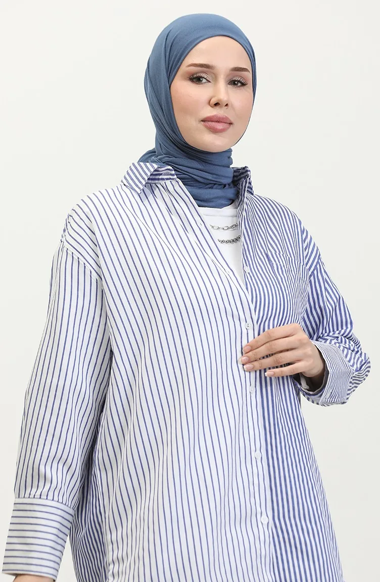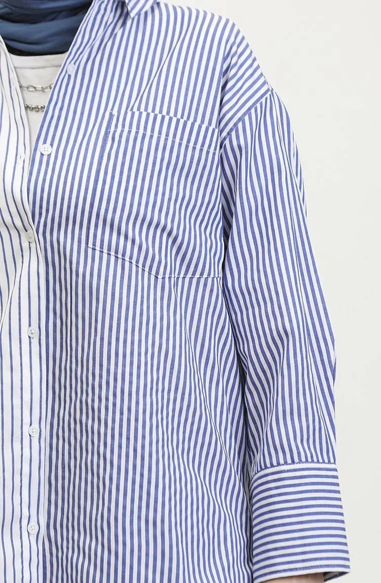 Saks renktedir. Pamuk dokuma kumaş. Çizgilidir. Astarsız. Uzun kolludur. Gömlek yaka detayı ile kullanışlı modeldir. 4 Mevsim tercih edebilirsiniz. Büyük beden seçeneği mevcuttur.