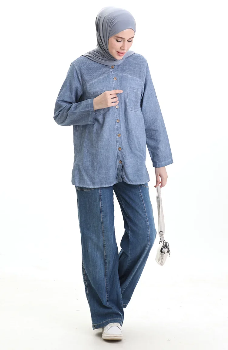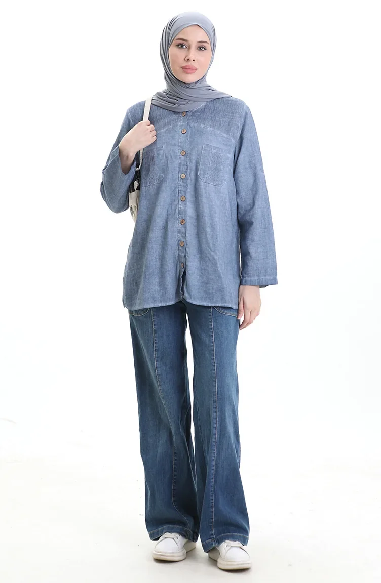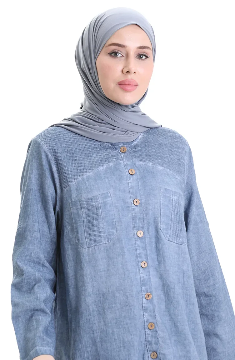 Buz Mavisi renktedir. Şile Bezi. Sade. Cep detaylı. Sıfır yaka detayı ile rahat kullanıma sahiptir. Yazlık. Standart.